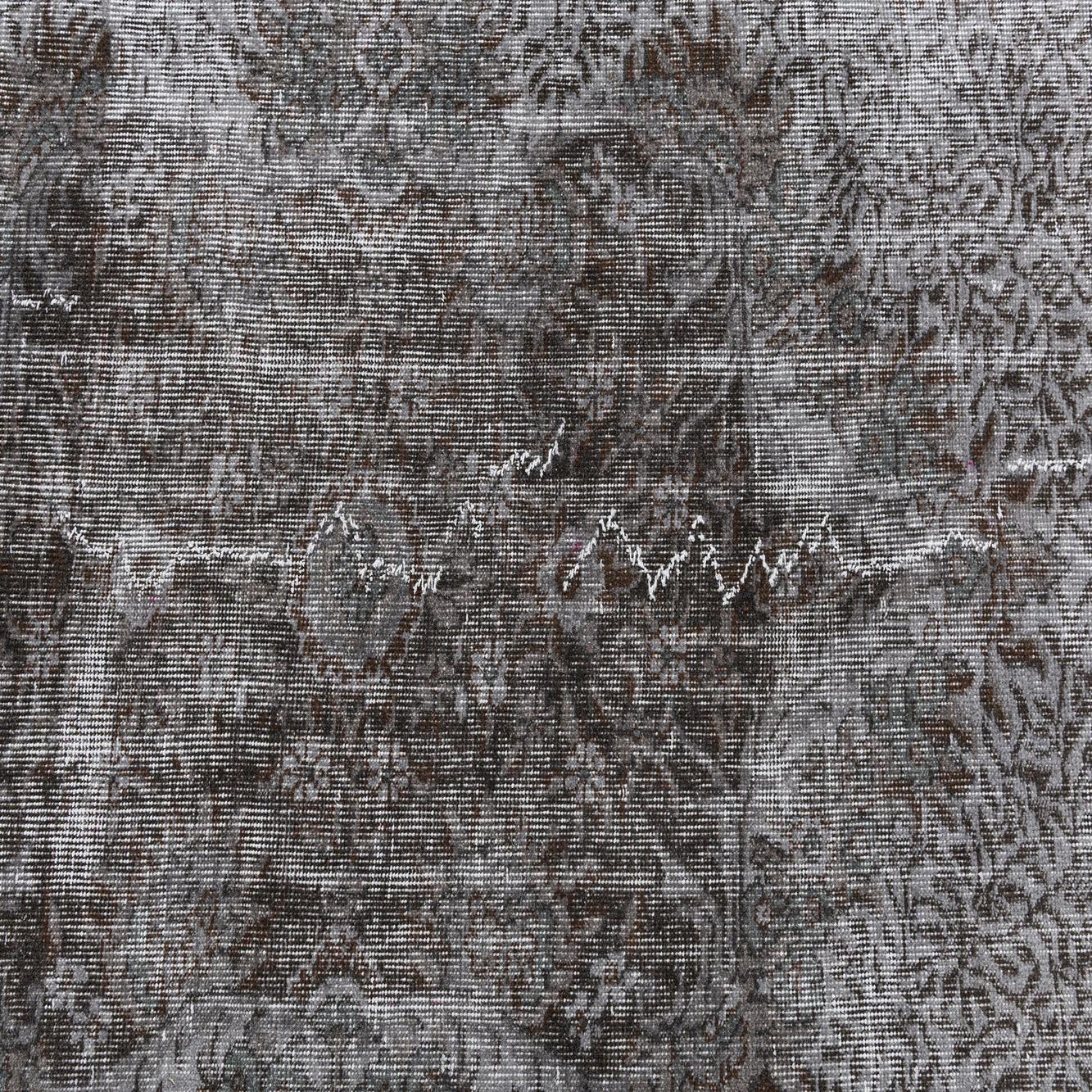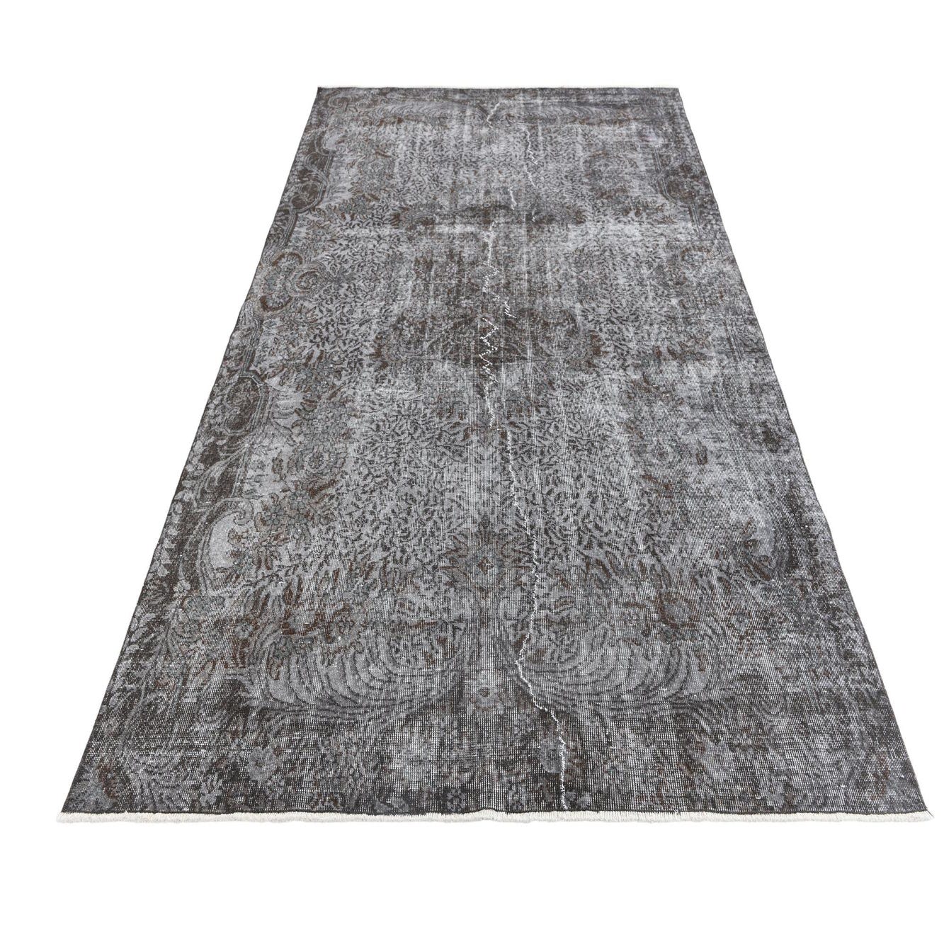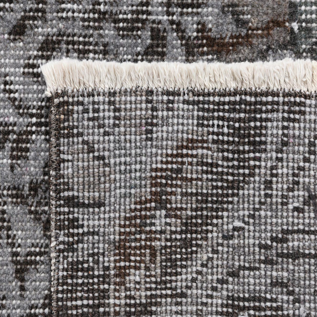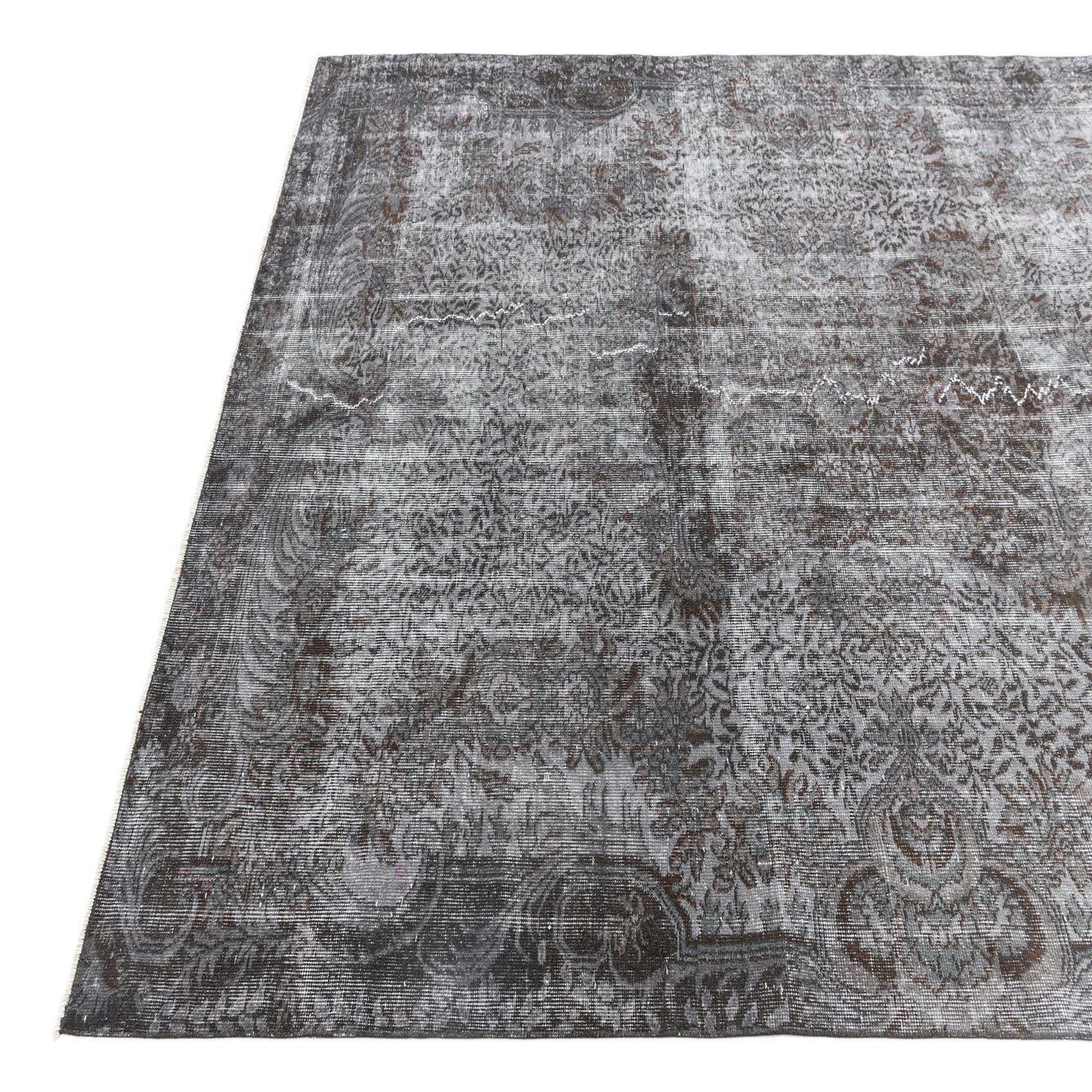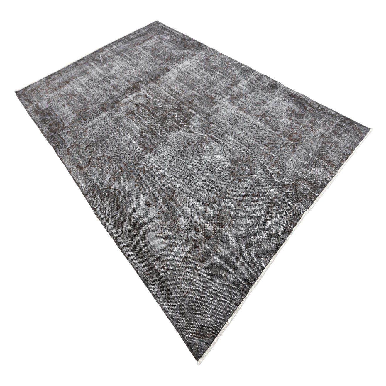 A 6x9 rectangular gray and silver modern vintage Persian wool rug with an intricate floral pattern and distressed finish.