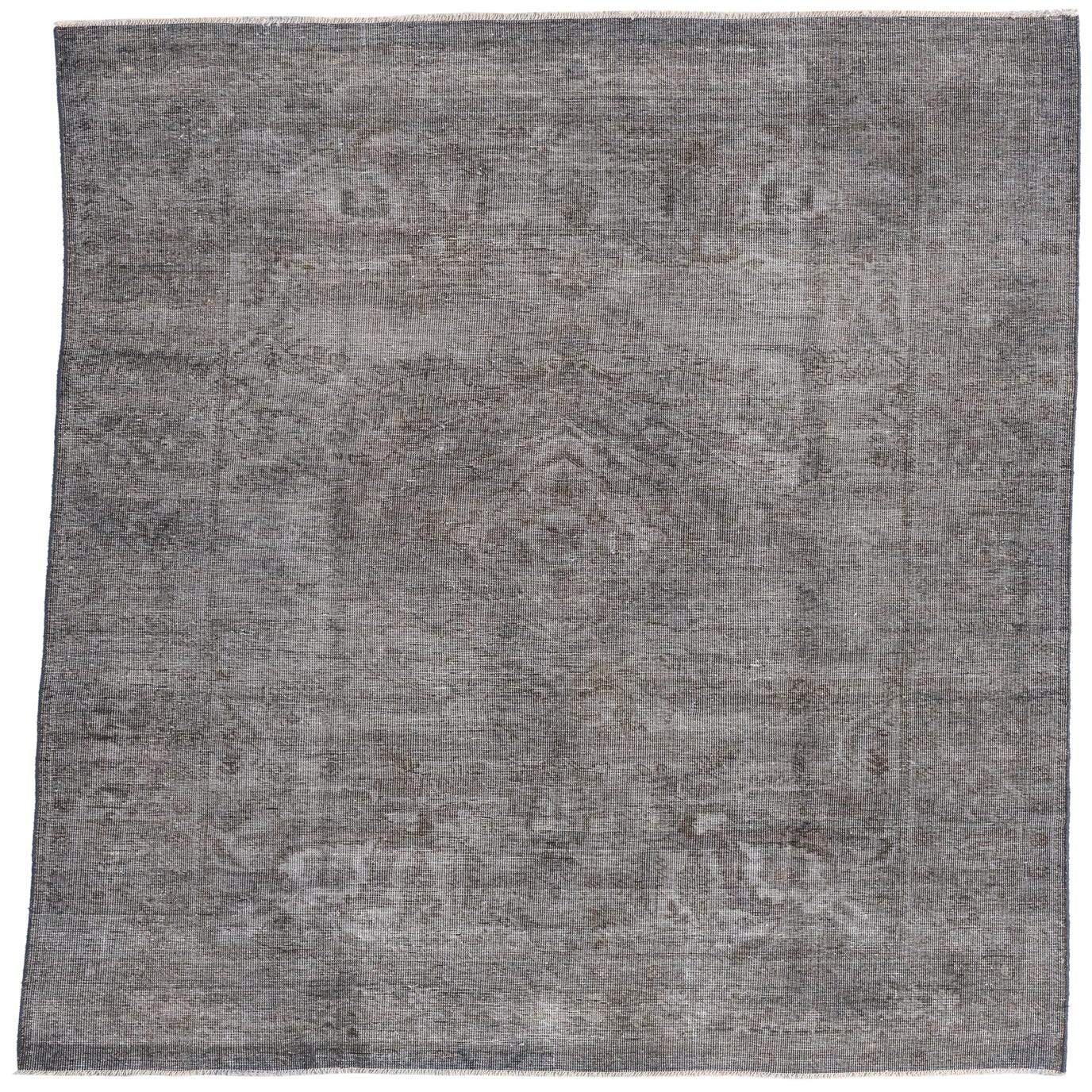 A 6x9 rectangular gray Persian area rug with a subtle vintage medallion pattern, handmade from wool.