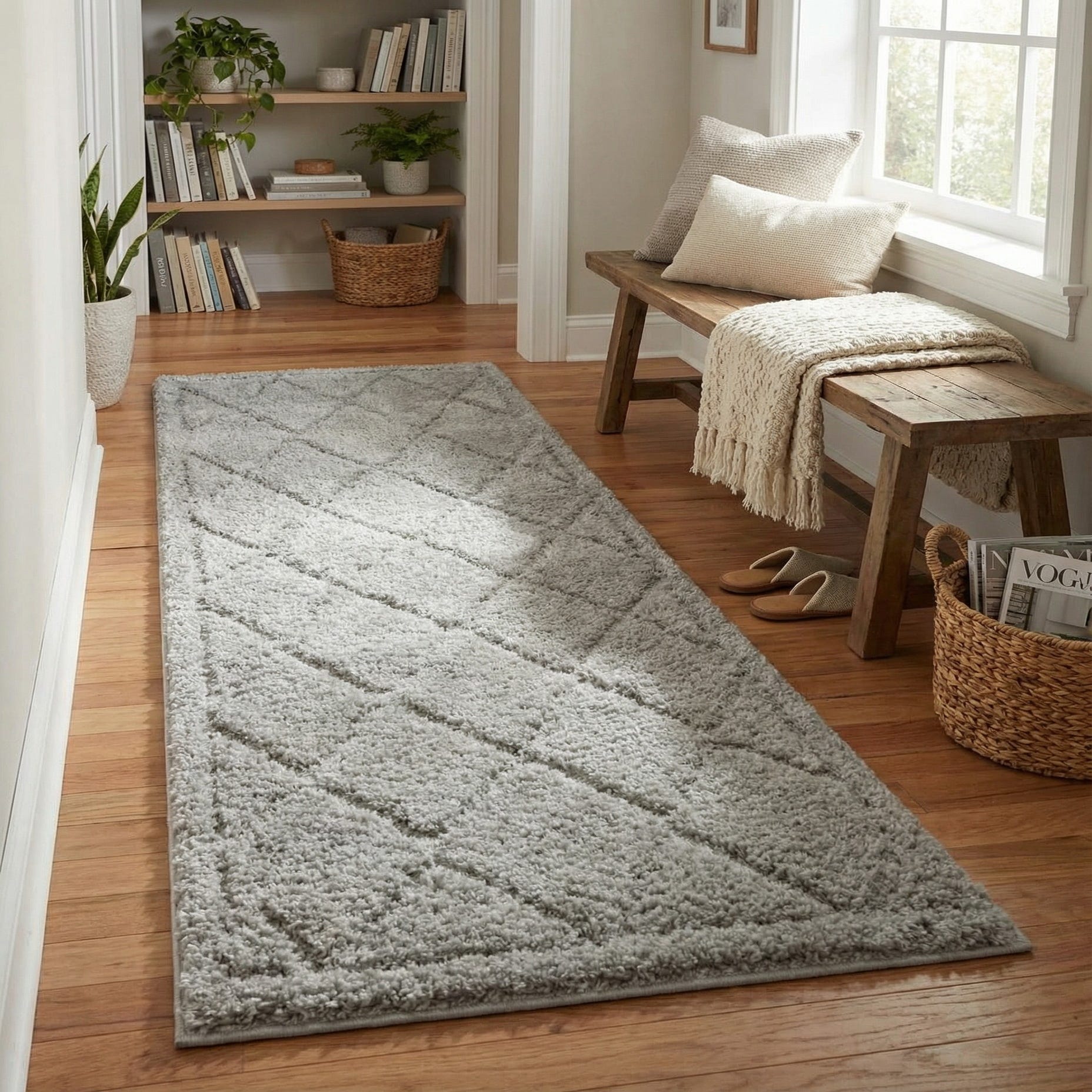 Ideal as a hallway or entry runner, alongside a bed, or in a narrow kitchen or mudroom where a touch of softness is desired. Works well with Scandinavian and modern transitional schemes—pair with light wood tones, linen upholstery, and simple metal accents for a calm, layered look—or use it in contemporary settings to introduce texture without adding strong color.