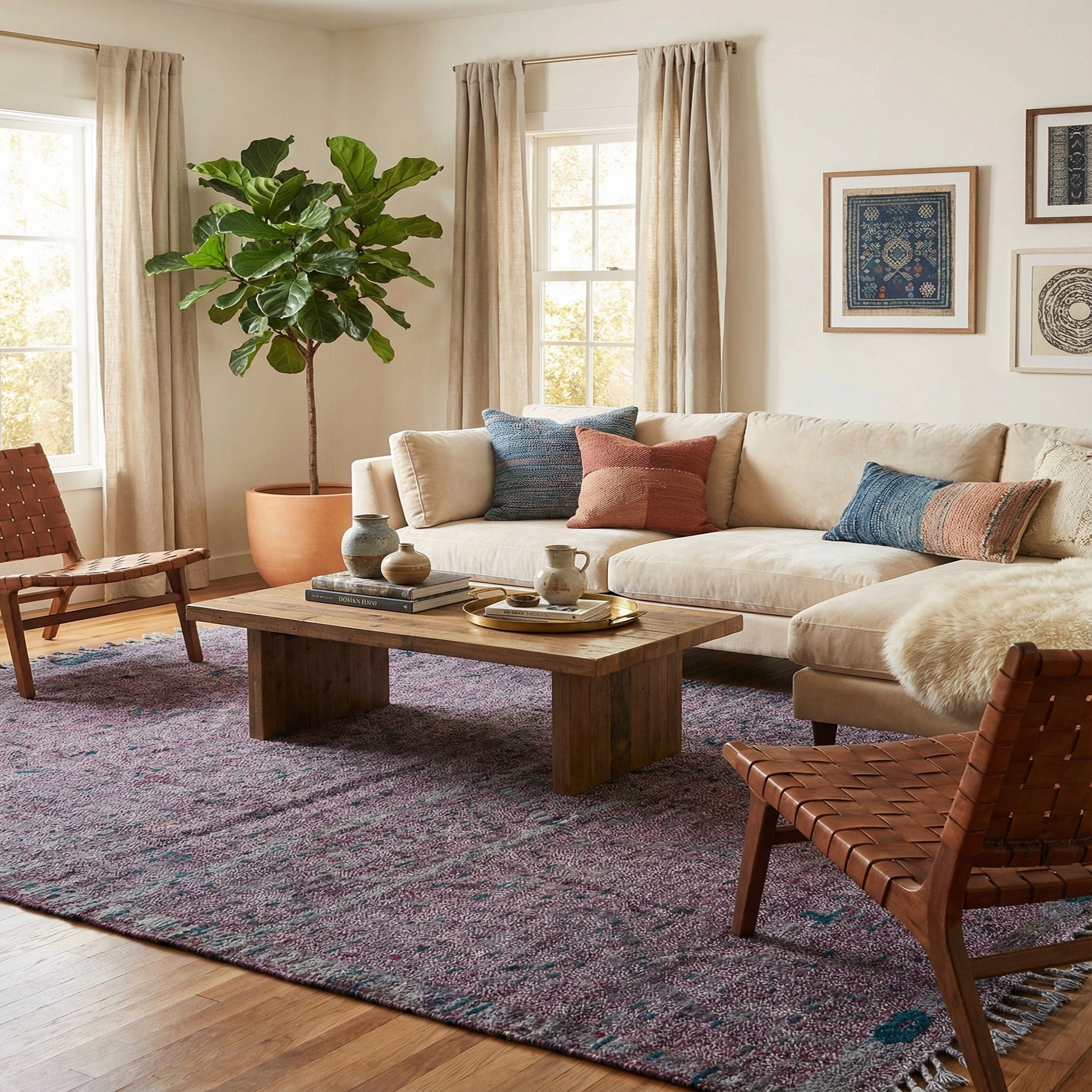 In terms of decor scenarios, this rug would complement interiors that lean towards understated elegance – think transitional, modern, or even Scandinavian-inspired spaces where its colors can either stand out as a focal point or blend harmoniously with a muted color scheme.