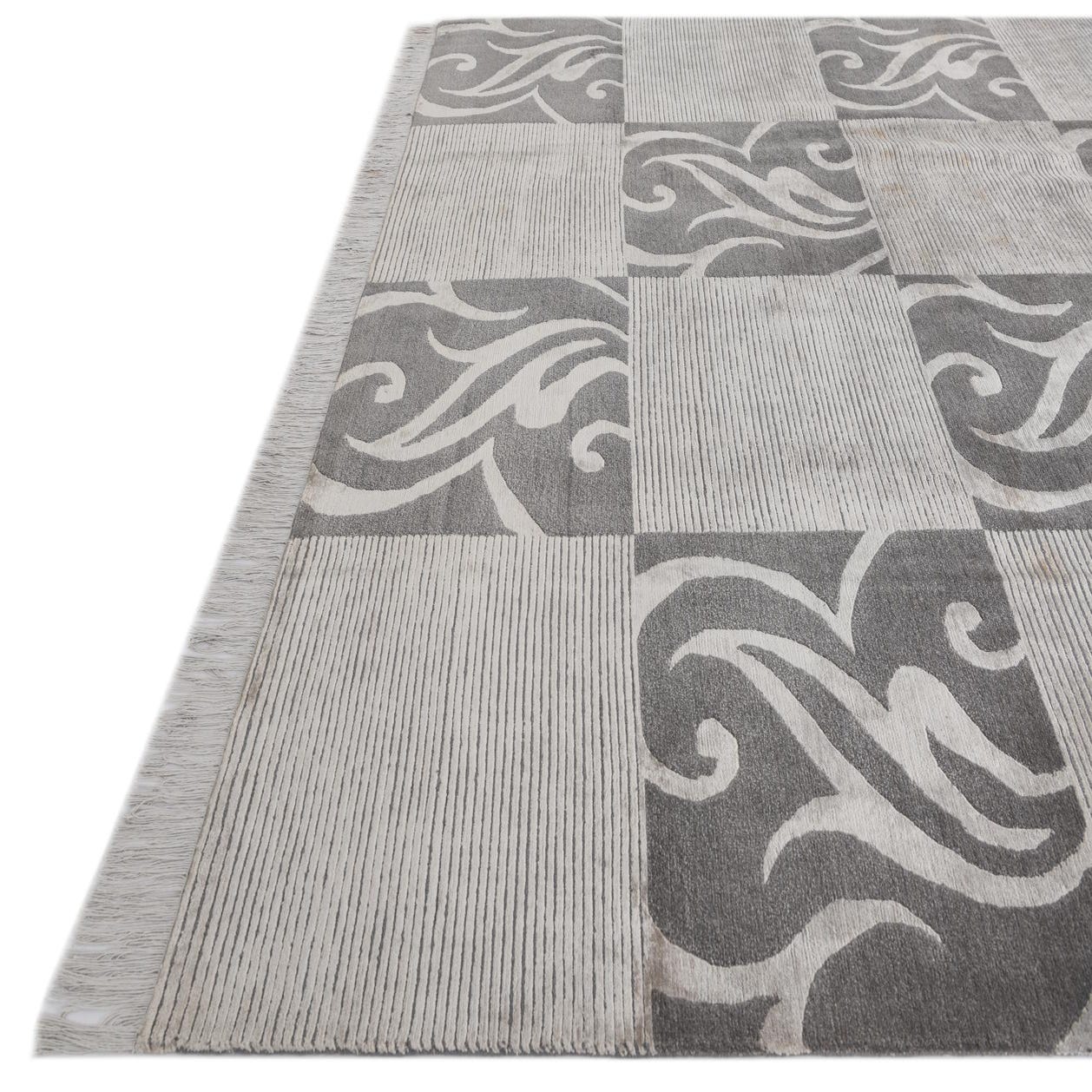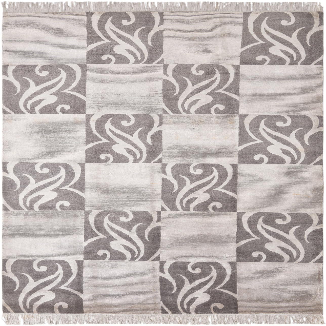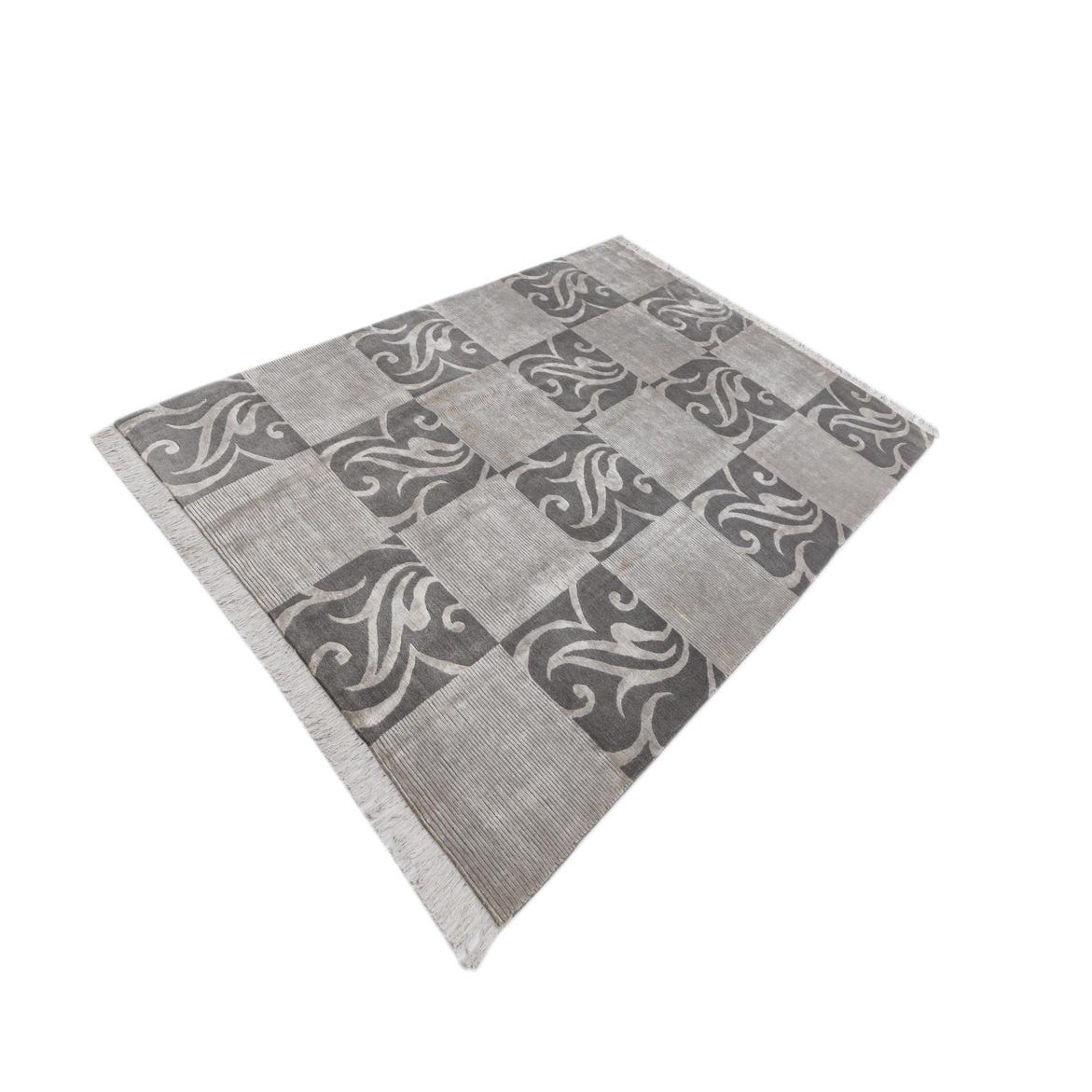 A 7x10 rectangular Darya rug with a modern gray and silver checkered pattern, featuring ornate oriental swirls in alternating squares.