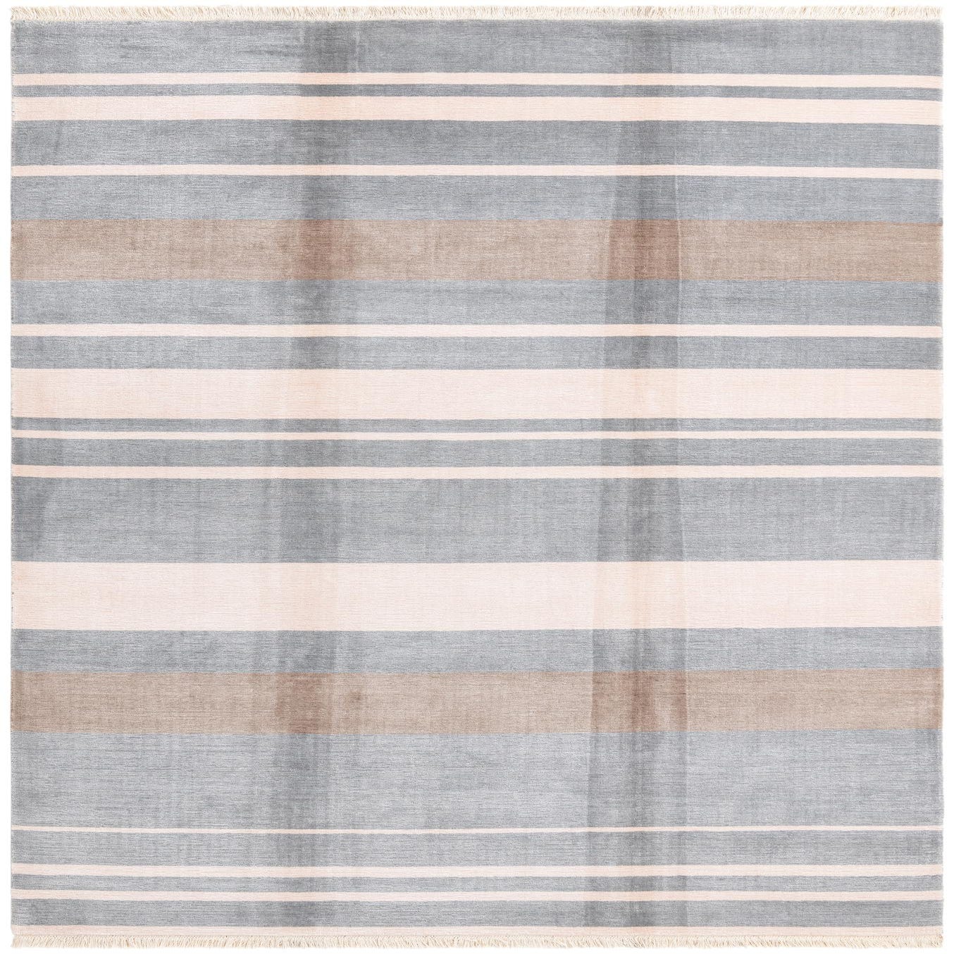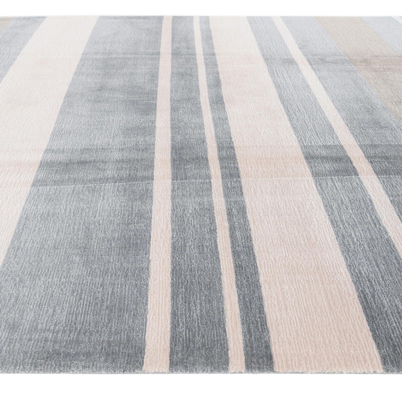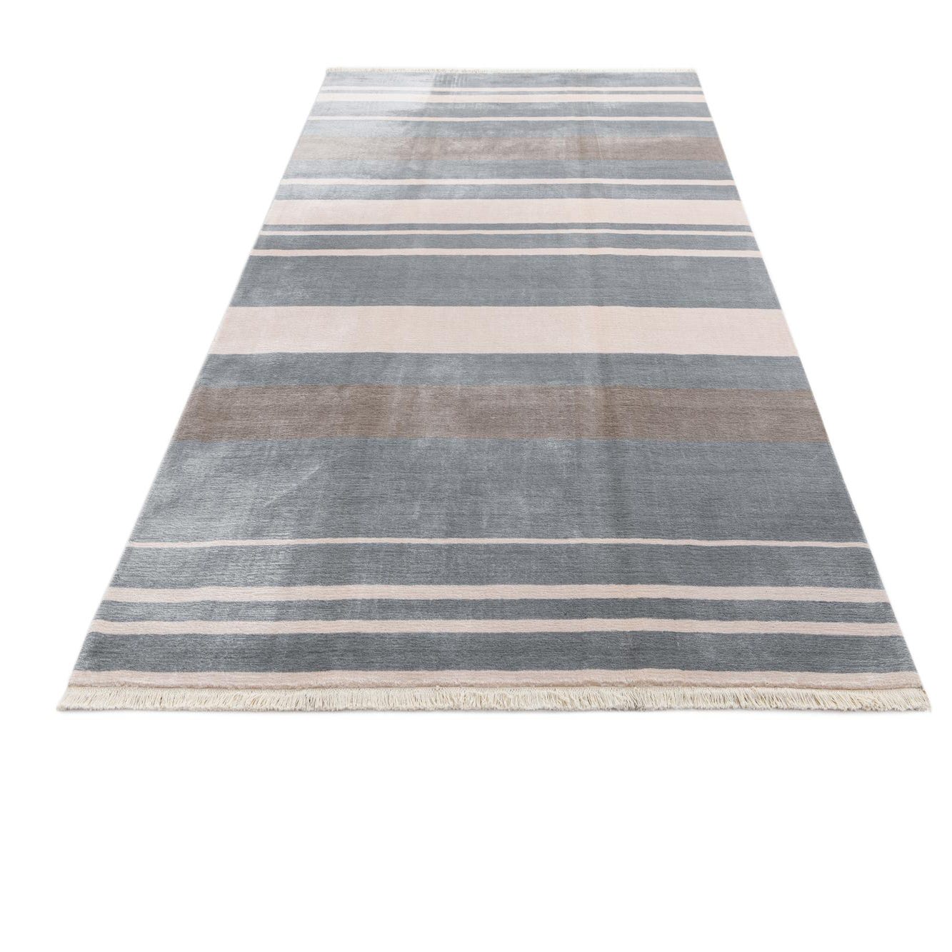 7x10 rectangular Darya rug with varying horizontal stripes in shades of gray, silver, and light beige.
