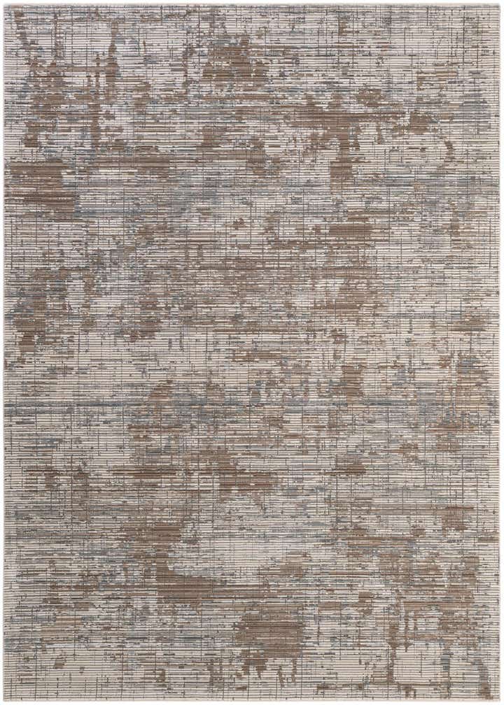 A 7x10 rectangular Deepa area rug featuring a modern abstract pattern in shades of gray and silver with subtle brown accents.