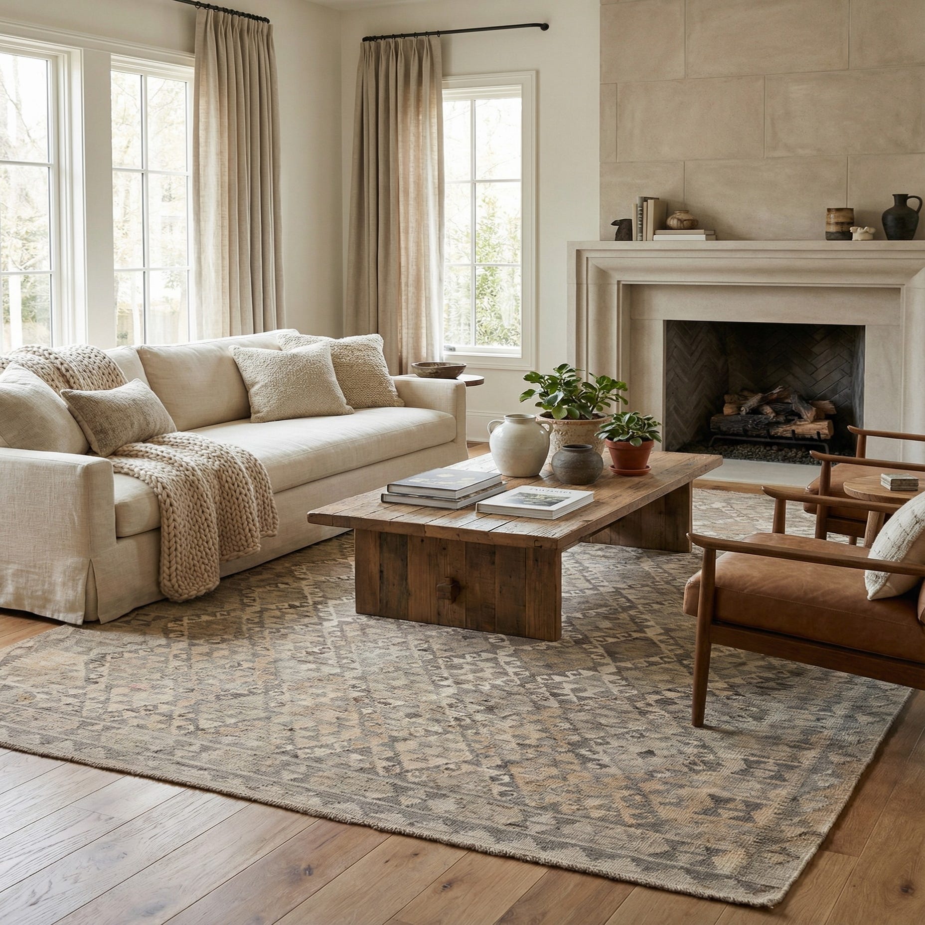 Primary color is Gray. Colors in this rug include: Gray, Beige, Brown.
