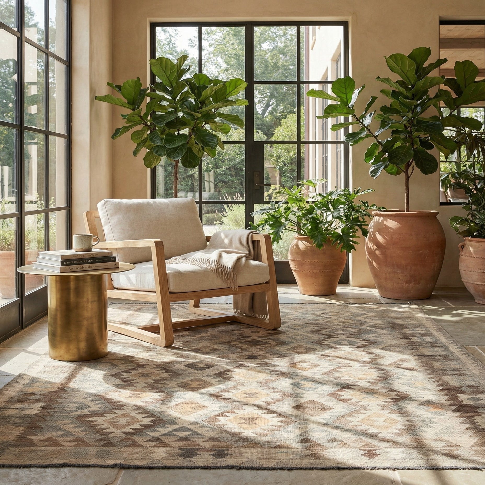 7' 4 x 9' 5 Hand Woven Kilim Maymana Wool Rug