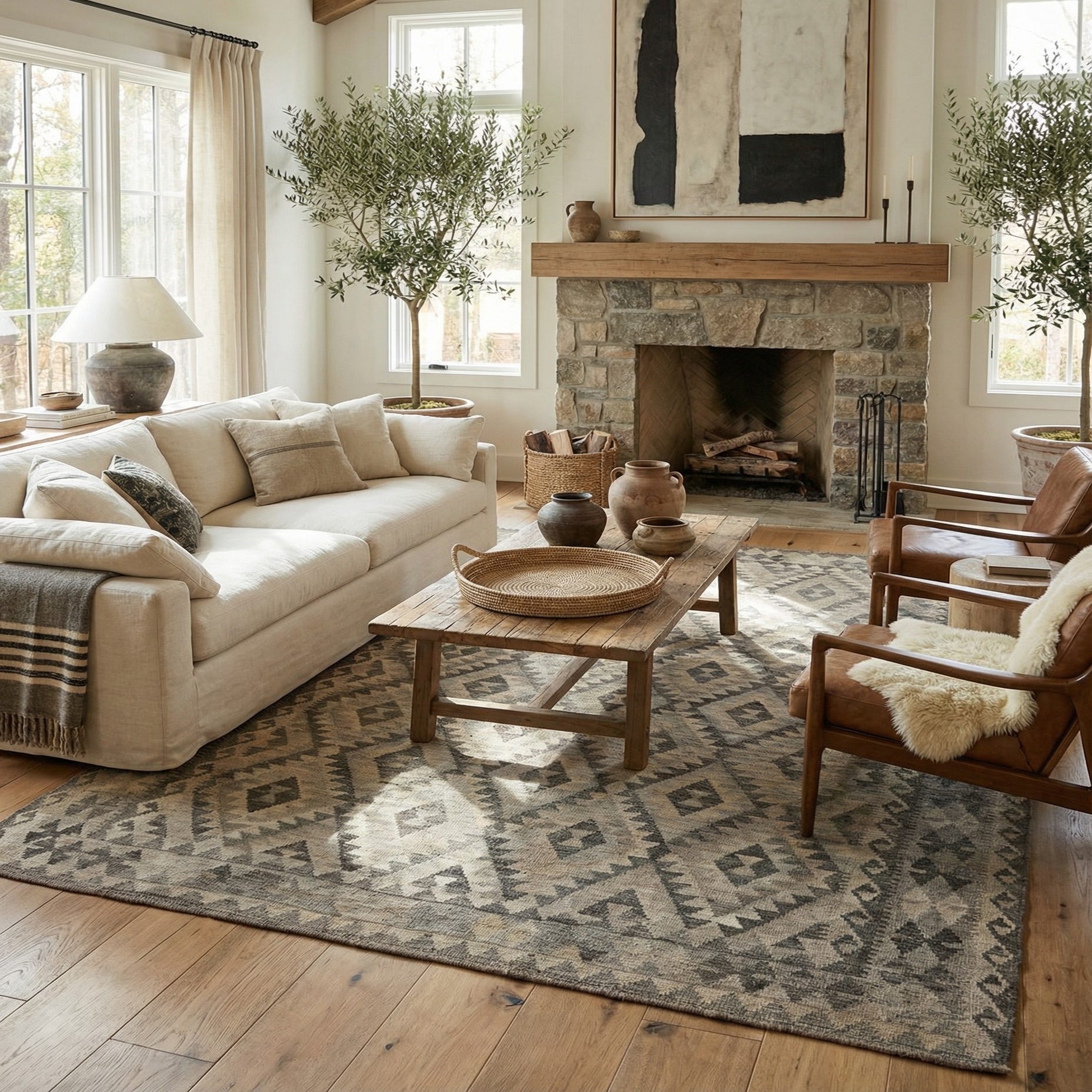 Primary color is Gray. Colors in this rug include: Gray, Beige, Light Brown.