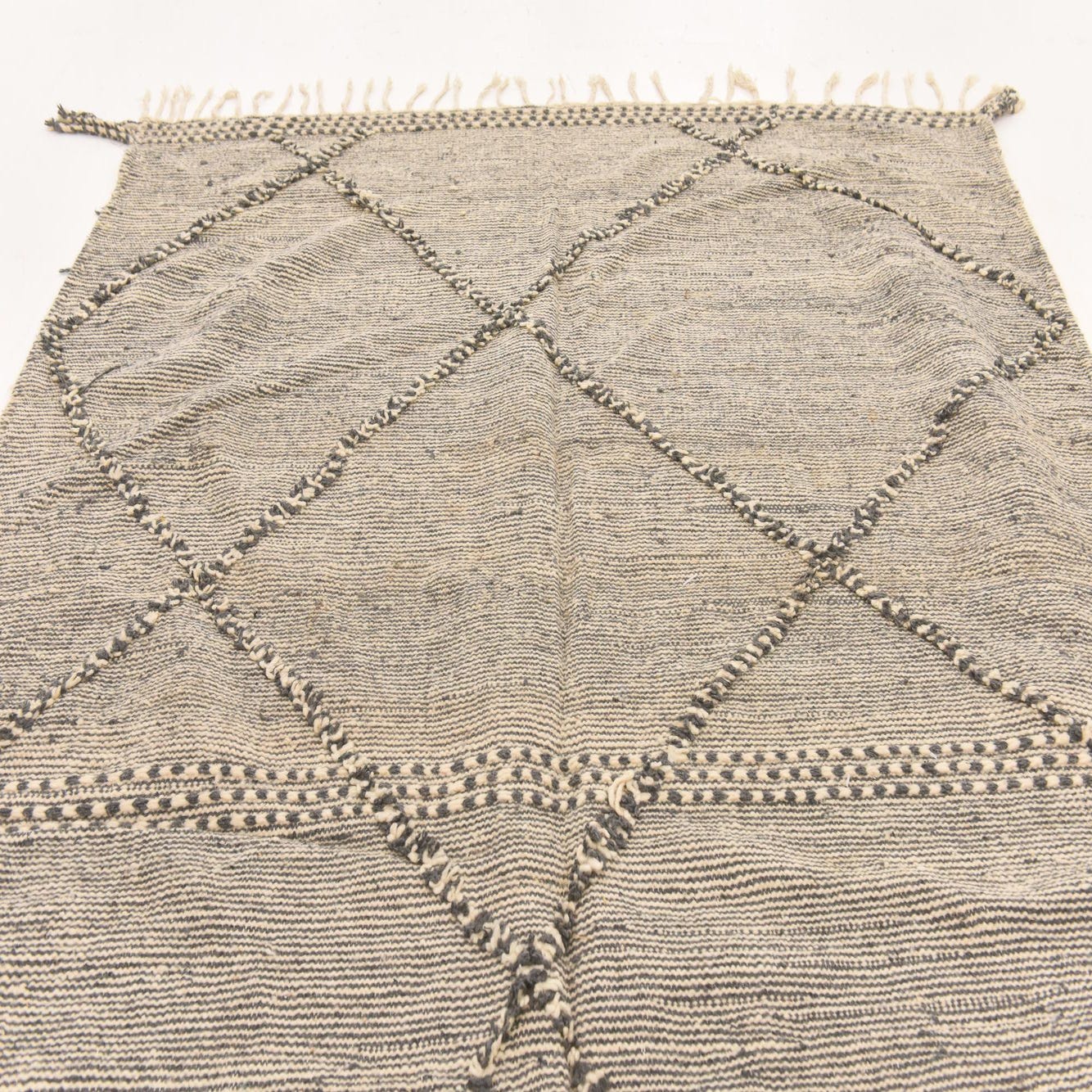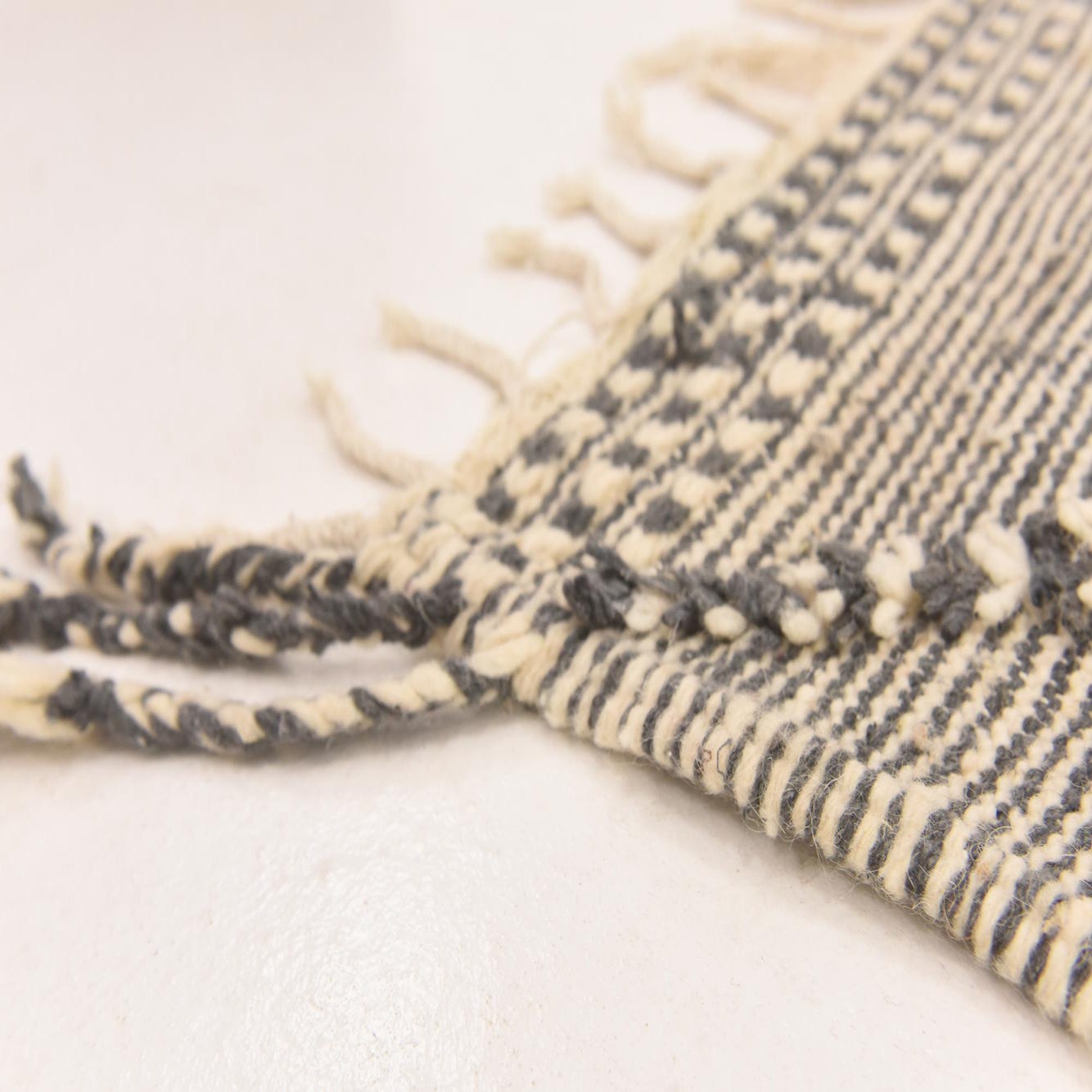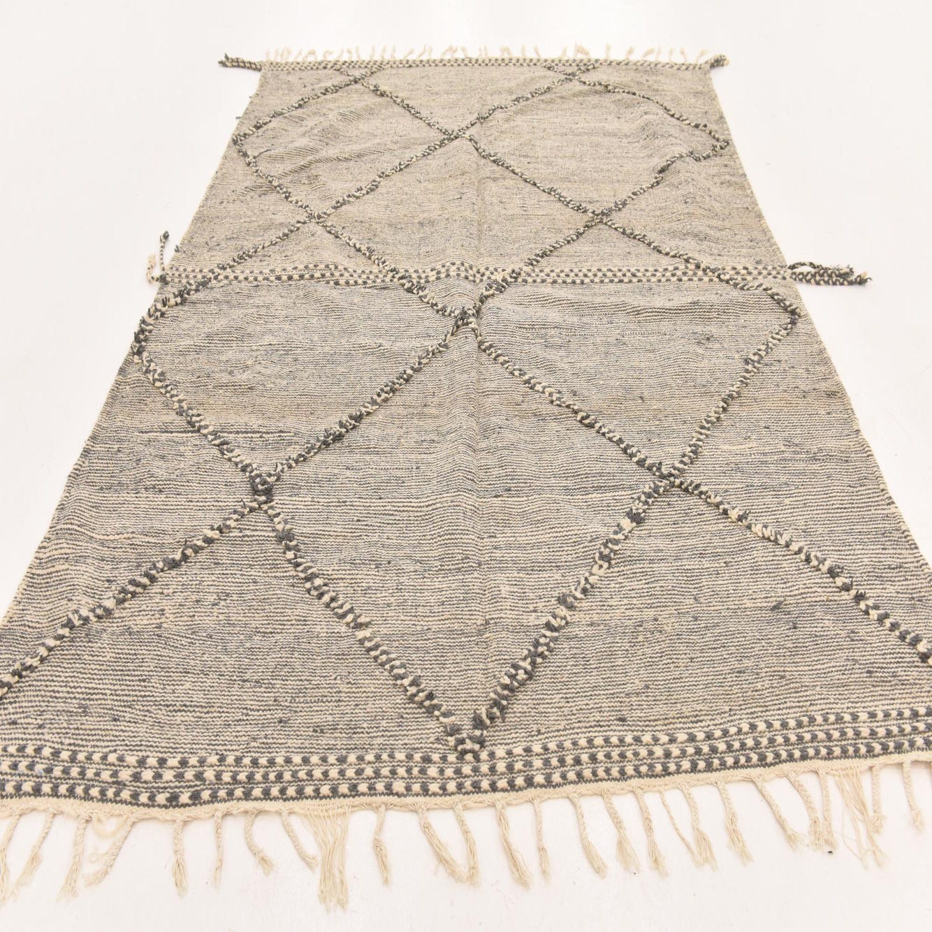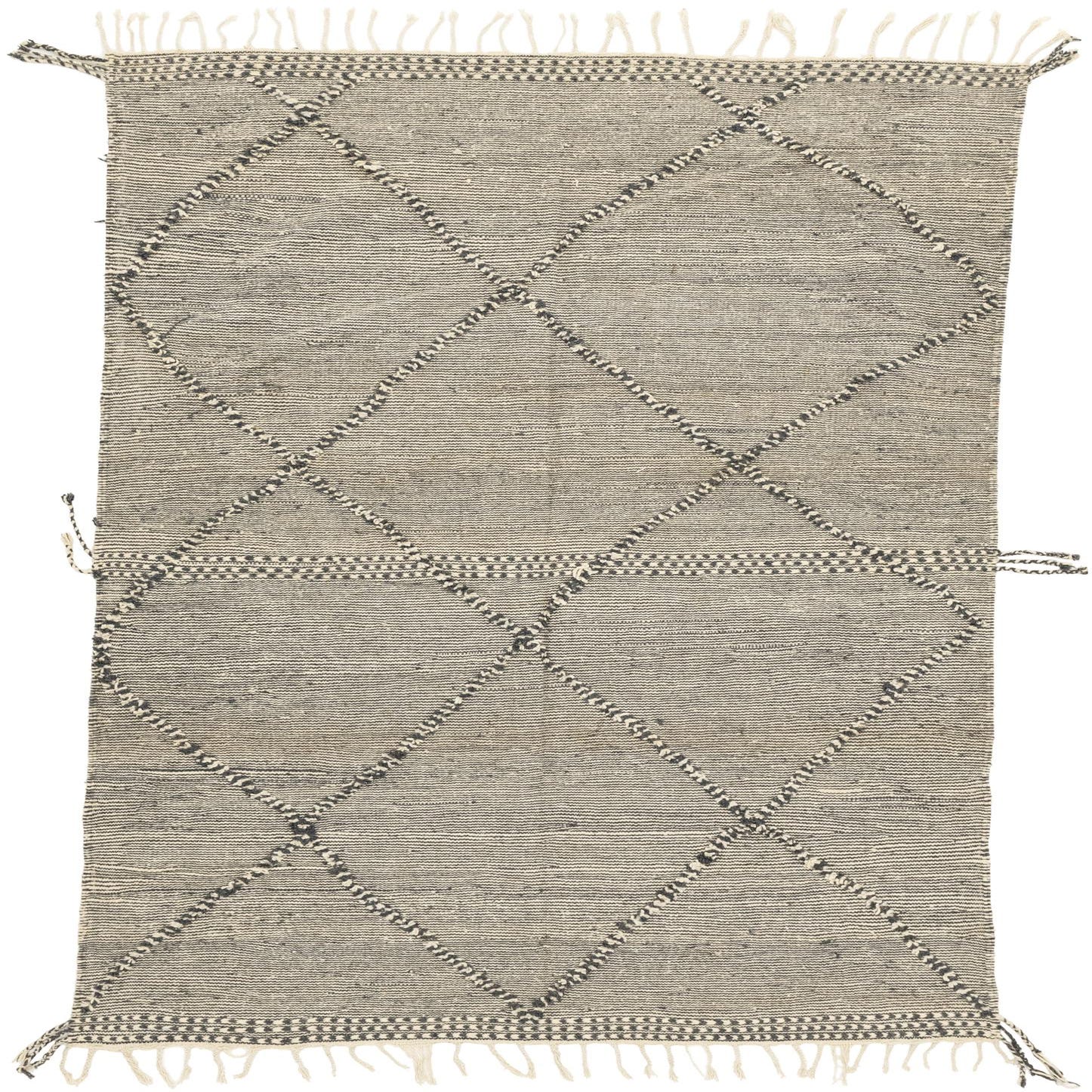 Suitable for a wide range of interior design scenarios, this Moroccan rug would work exceptionally well in spaces that celebrate both modern and traditional elements. It could effortlessly complement a minimalistic and contemporary setting or add a layer of depth to a more eclectic or bohemian environment. The neutral color scheme allows for versatility in styling, making it an excellent choice for those looking to integrate an authentic artisan piece into their home decor.