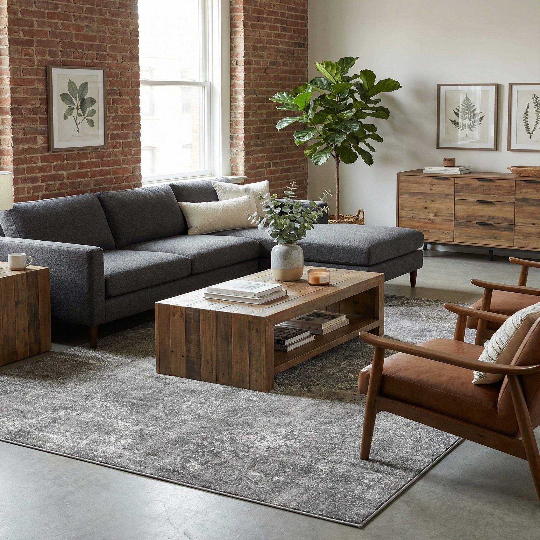 This neutral palette and understated pattern work well in modern and transitional interiors. Place it beneath a sofa to anchor a cool-toned living room, layer it under a bed to add quiet contrast to warm wood floors, or use it in a home office to create a calm, focused base. It also pairs nicely with metal accents and ivory textiles when you want a balanced, contemporary look.