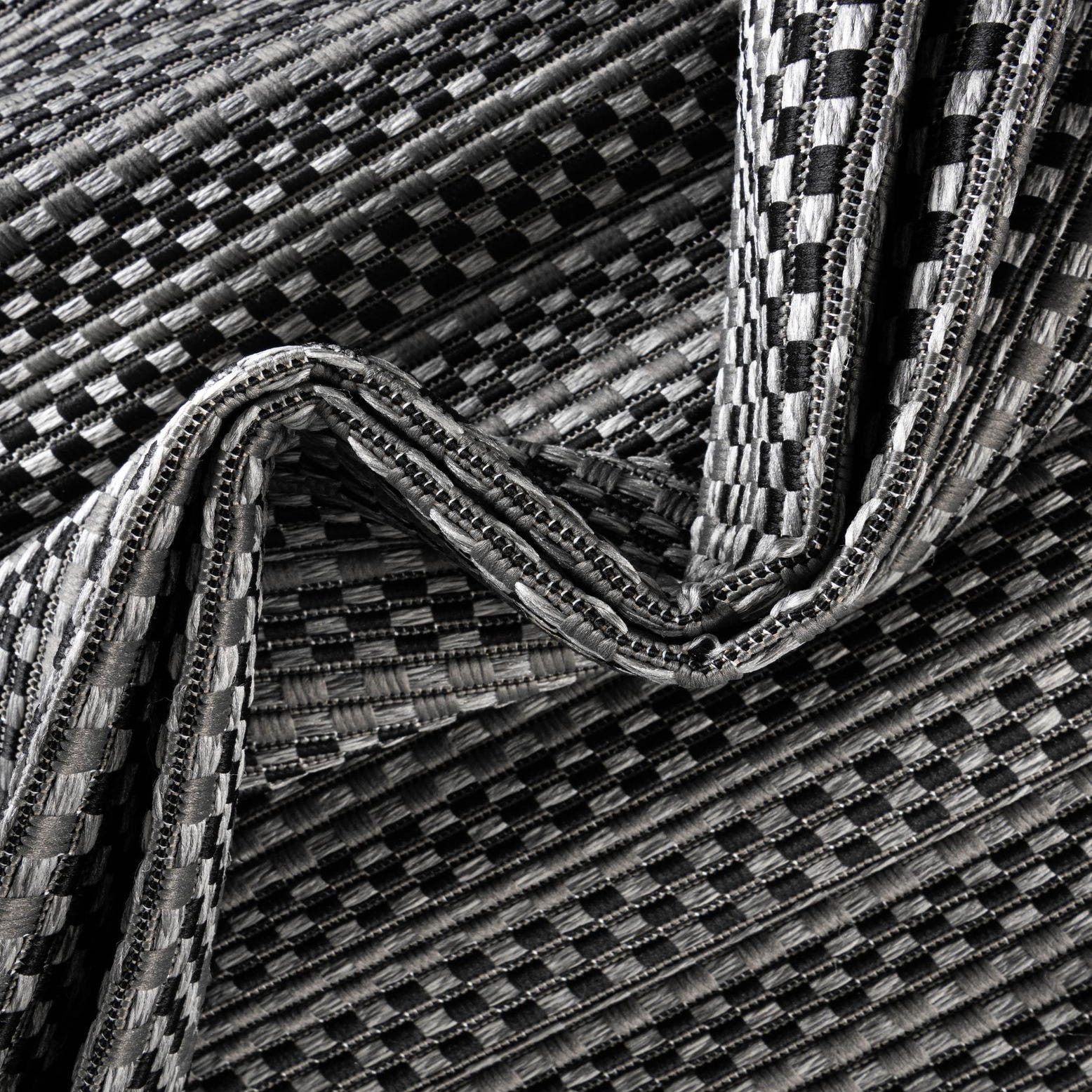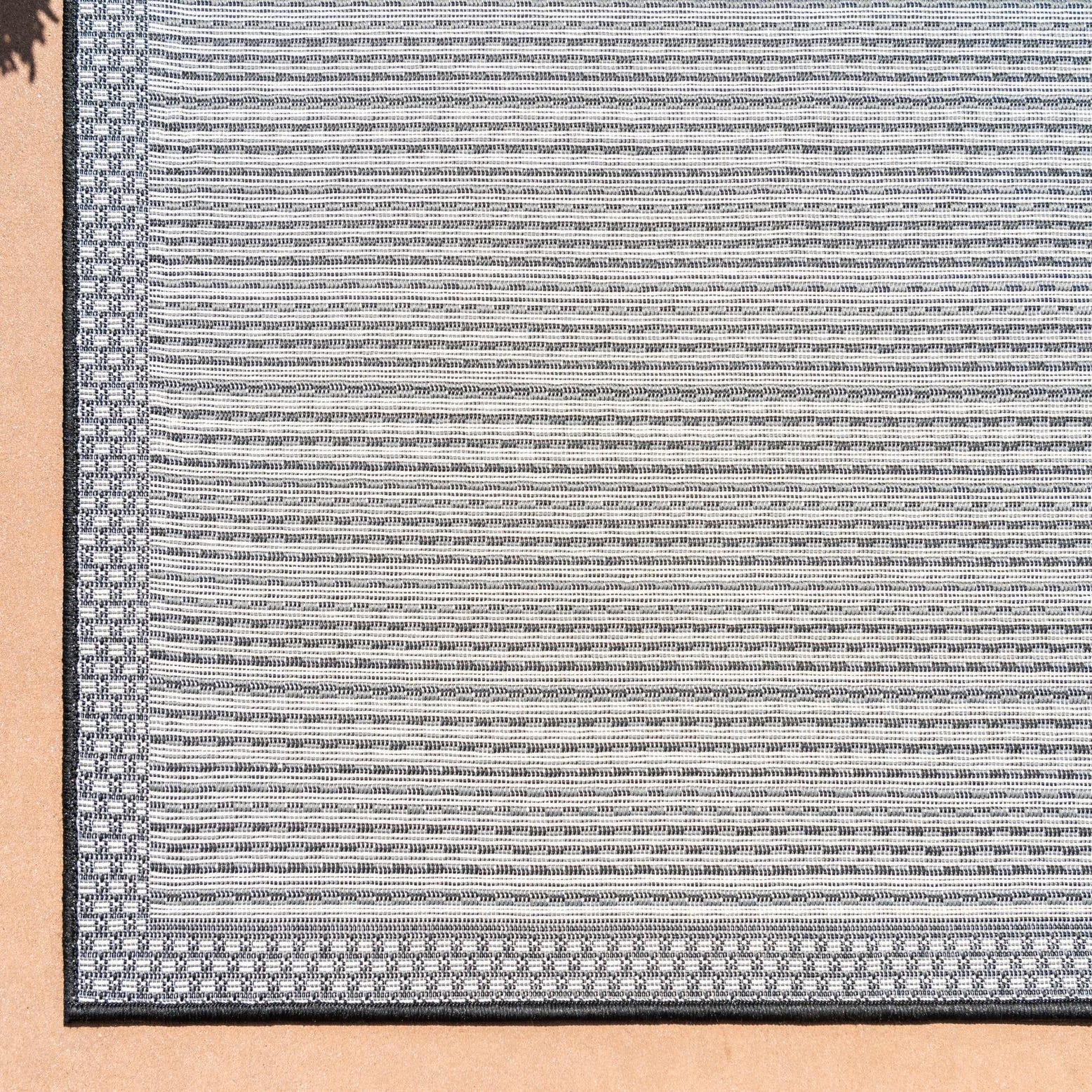 Place it on a covered patio or balcony to ground outdoor seating, or use it in a sunroom or mudroom where easygoing style and durability matter. Its neutral gray base with black and silver accents pairs well with modern metal furniture, coastal wicker in muted tones, or a monochrome interior where pattern is needed without overwhelming the space.