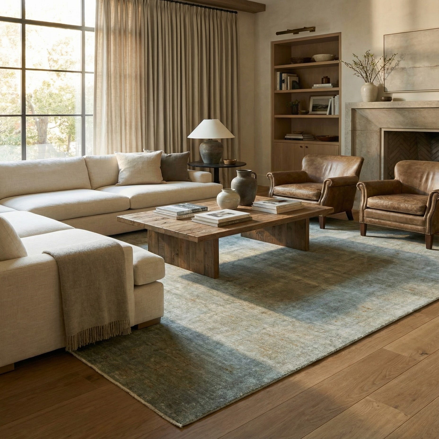 The rug's fringe adds a classic touch, while its over-dyed finish creates a nuanced, antique look, making it a versatile centerpiece in a variety of interior design themes. Its muted tones and understated pattern make it particularly well-suited for modern, minimalist, and Scandinavian-style spaces, as well as traditional settings looking for a contemporary lift. It could also serve as a harmonious addition to industrially styled rooms, providing warmth and balance.