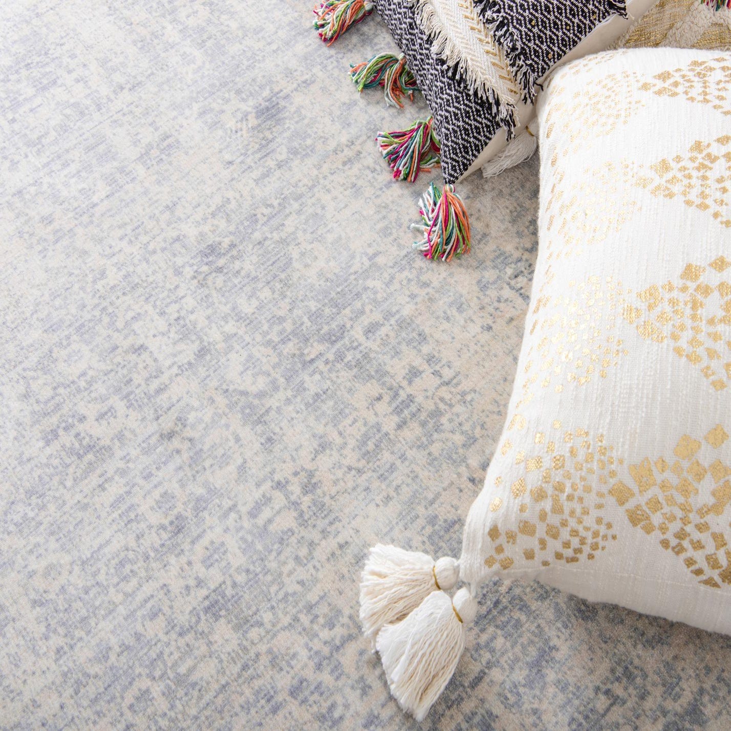 Primary color is Gray. Colors in this rug include: Gray, Beige, Light Blue.