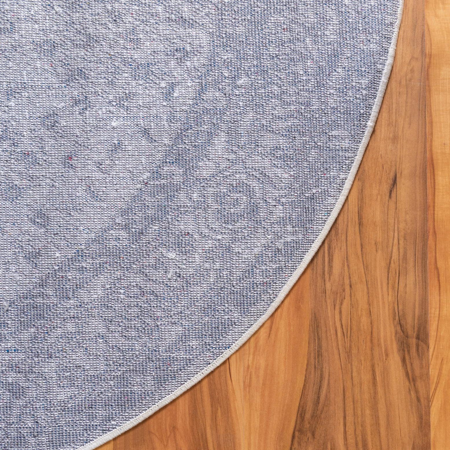 Machine-made in 100% polypropylene, the rug has a low, dense pile that feels smooth underfoot and lays flat for easy placement. Its neutral gray and ivory palette pairs well with warm wood furniture, linen upholstery, and muted metallic accents. Use it to anchor a round dining table, soften a seating area beneath a round coffee table, or layer beneath a bed to add pattern without heavy color—especially in transitional, modern farmhouse, or Scandinavian-inspired interiors.