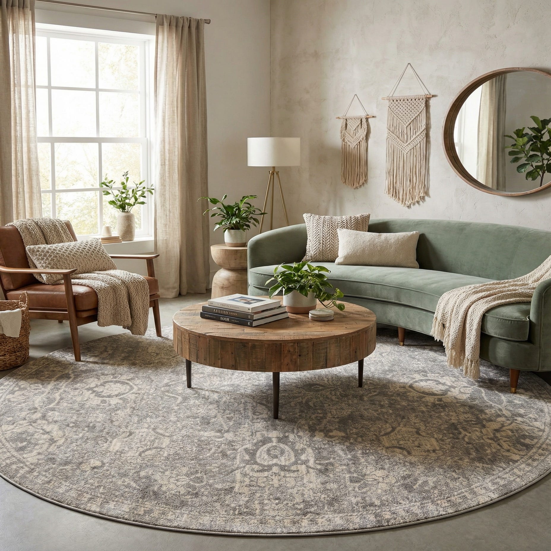 The round shape is an excellent choice to soften the lines of square or rectangular rooms and is particularly well-suited for placement under round dining tables, in cozy reading corners, or as a focal point in a living room. Its understated palette and design give it the versatility to complement a range of interiors from minimalist and Scandinavian-inspired to more traditional settings. The shed-free property of the rug also contributes to its lasting attractiveness and user-friendly appeal.