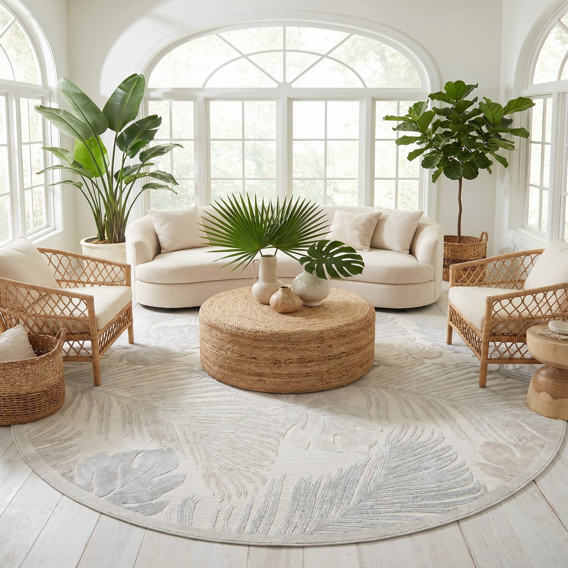 8' 2 x 8' 2 Easy-Clean Botanical Indoor / Outdoor Round Rug