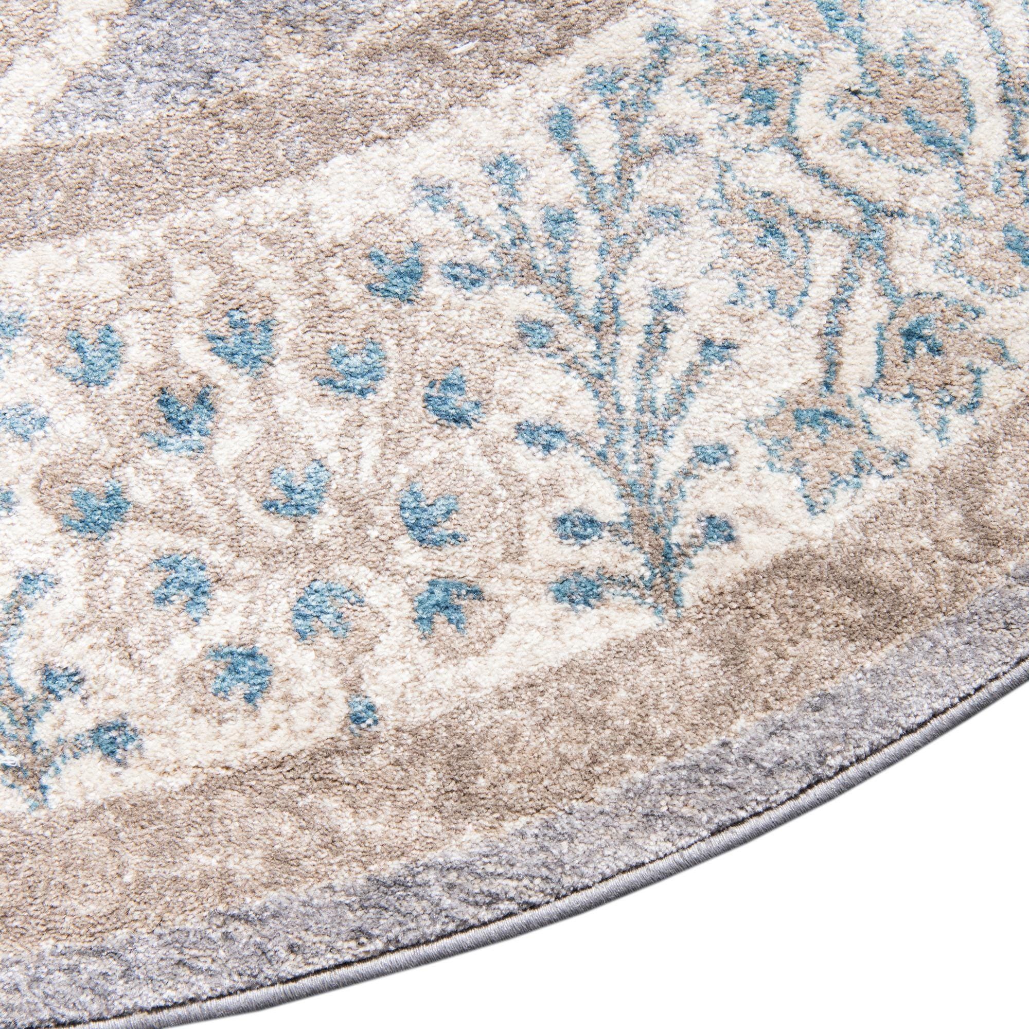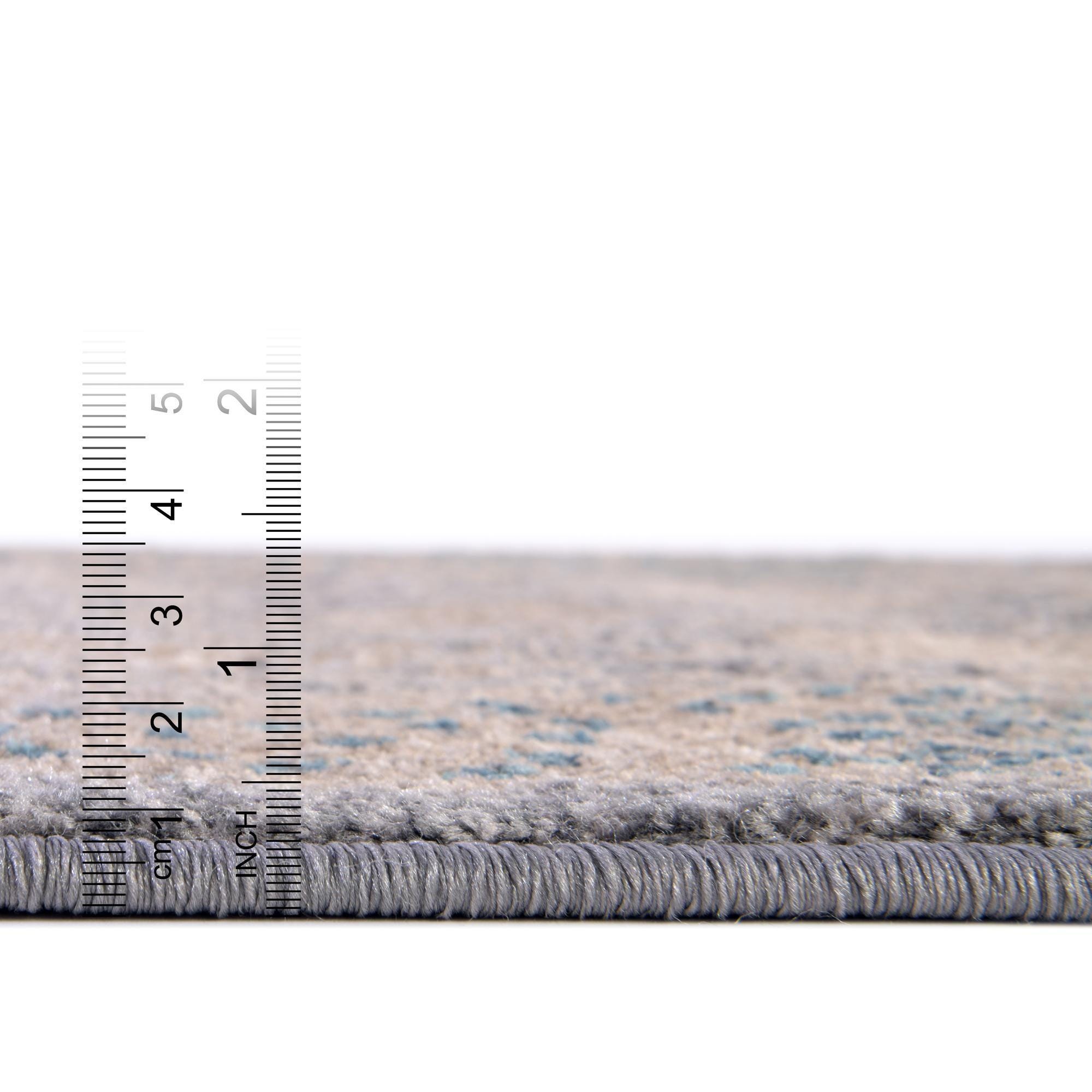 Primary color is Gray. Colors in this rug include: Gray, Ivory, Light Blue.