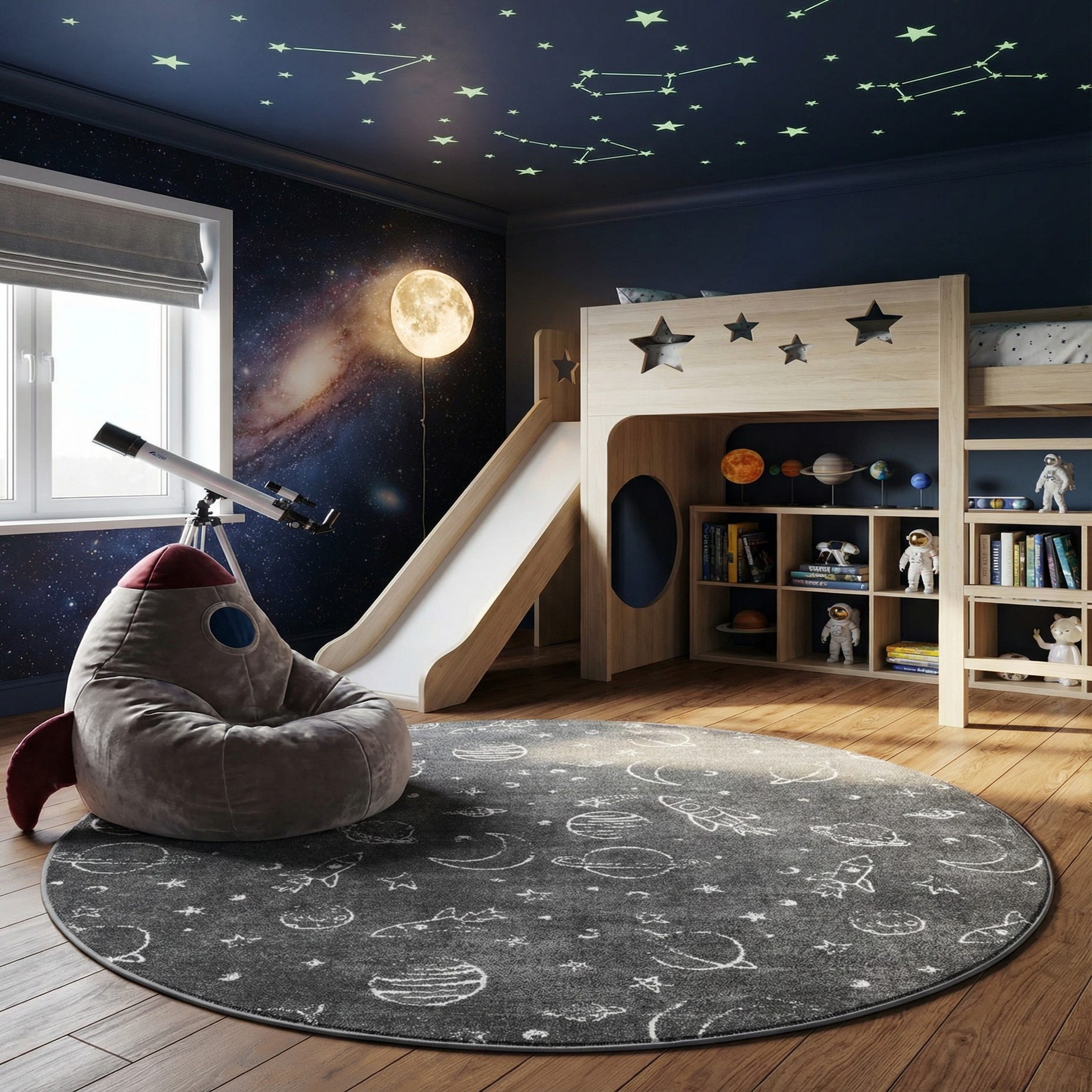7' 10 x 7' 10 Planets Whimsy Kids Round Rug