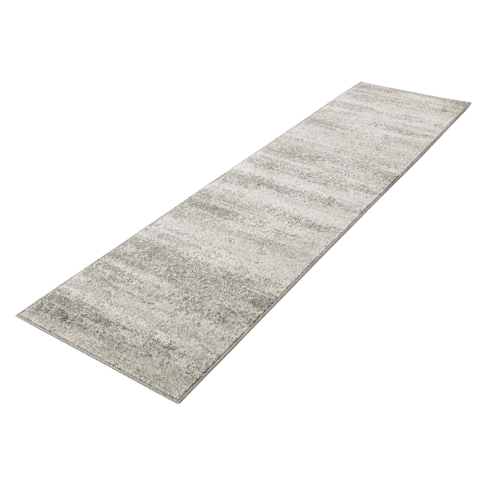 The Angelica collection presents a sophisticated 8 Ft runner rug, machine-woven of 100% polypropylene. This durable piece showcases a modern gradient design with horizontal bands that transition from ivory to various shades of gray, set against a gray background that harmonizes beautifully with the pattern. The texture is designed to offer a pleasant underfoot experience while ensuring the rug is shed-free and stain-resistant, facilitating ease of maintenance.