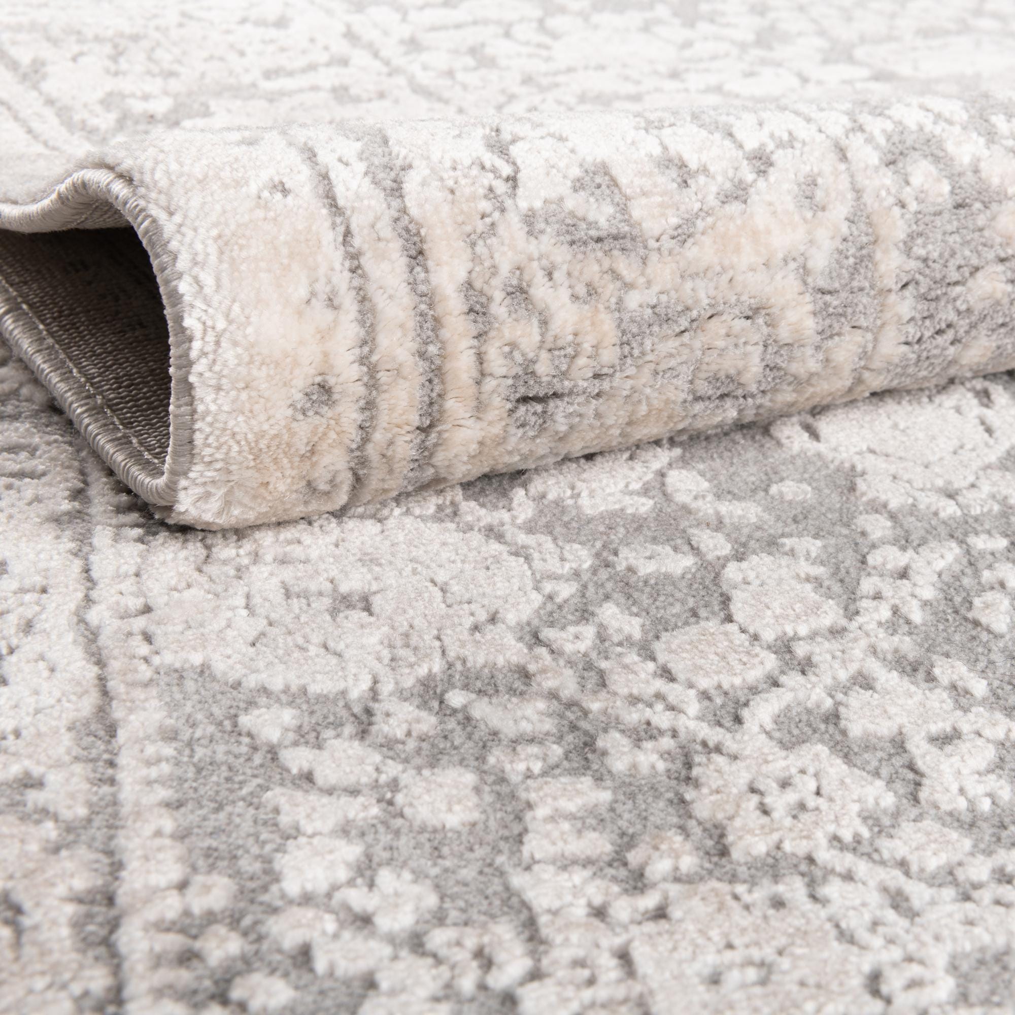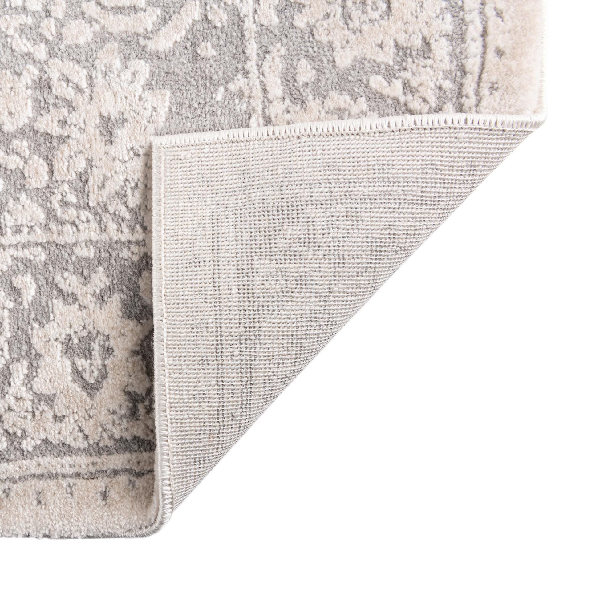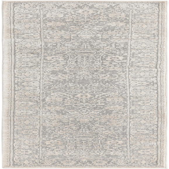 Primary color is Gray. Colors in this rug include: Gray, Ivory.