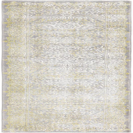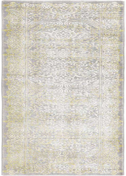 Primary color is Gray. Colors in this rug include: Gray, Ivory, Yellow.