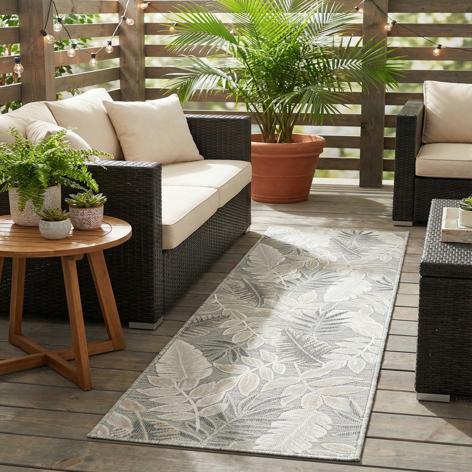 This runner works well in a covered porch, entryway, hallway, or along a kitchen aisle where a touch of organic pattern is desired. It pairs naturally with light-wash or weathered wood, woven rattan or seagrass accents, neutral upholstery, and indoor plants for a relaxed coastal, modern farmhouse, or transitional interior. Use it to introduce pattern into a narrow space without overpowering a neutral color scheme.