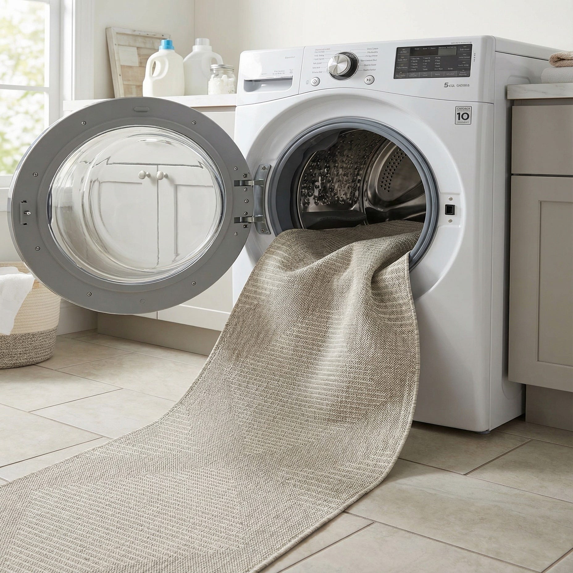 Designed to complement clean, modern settings, this runner works well in a hallway, entry, covered porch, or alongside a bed. Pair it with natural woods and wicker for a relaxed, coastal or Scandinavian look, or use it to soften industrial elements like metal furniture and concrete floors in contemporary interiors. Its neutral palette makes it easy to layer with textured pillows, planters, or a simple dining bench for a calm, collected arrangement.