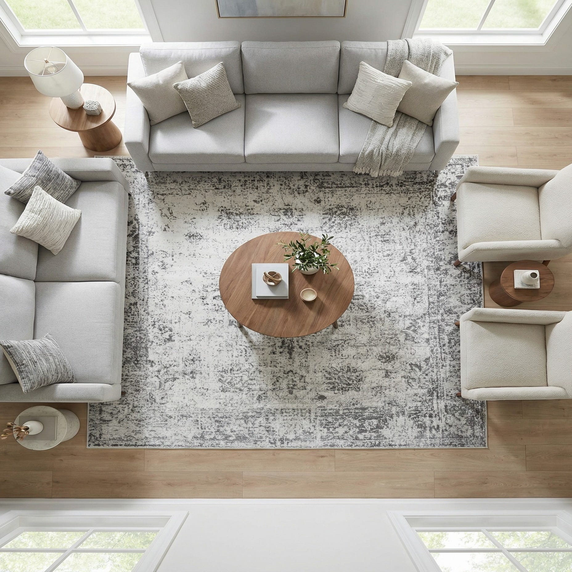 Primary color is Gray. Colors in this rug include: Gray, Beige.