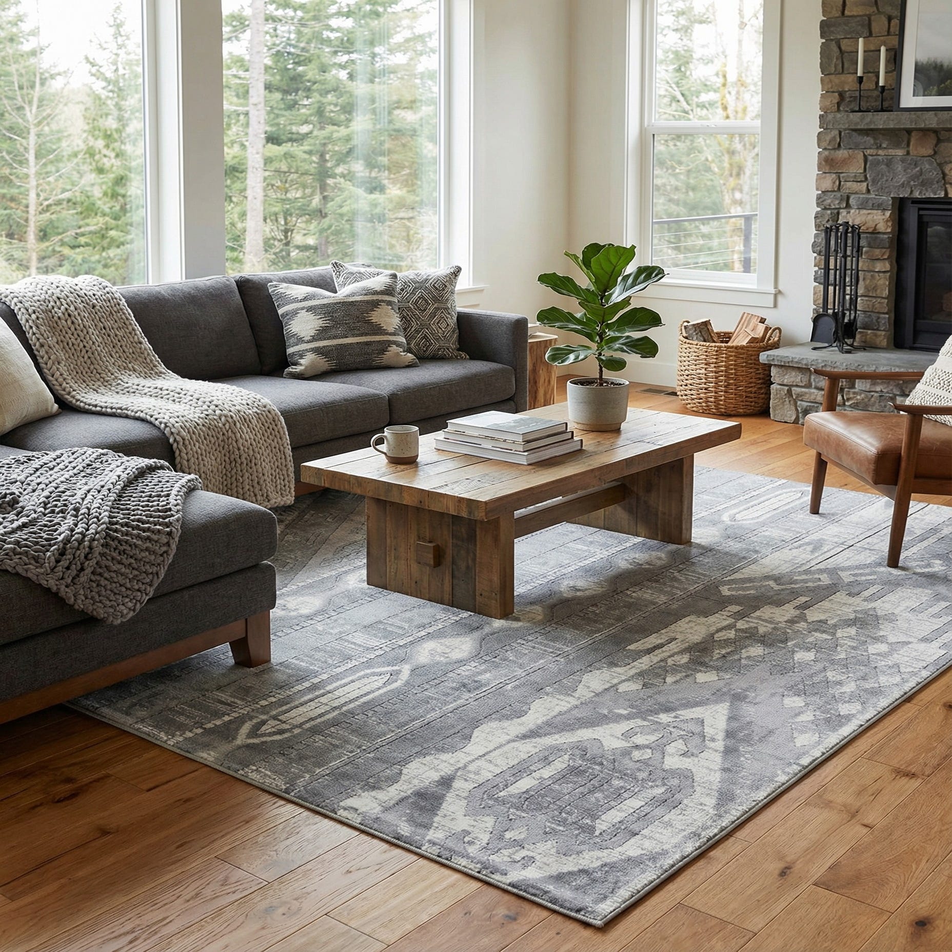 This pattern and palette work well in contemporary or transitional rooms where a neutral foundation is needed—use it to ground a living room seating area, layer under a bed for added warmth, or center a home office for a refined, collected feel. Pair with pale woods and matte metal accents for a modern look, or combine with textured linens and woven baskets to play up the rug’s soft, lived-in character.