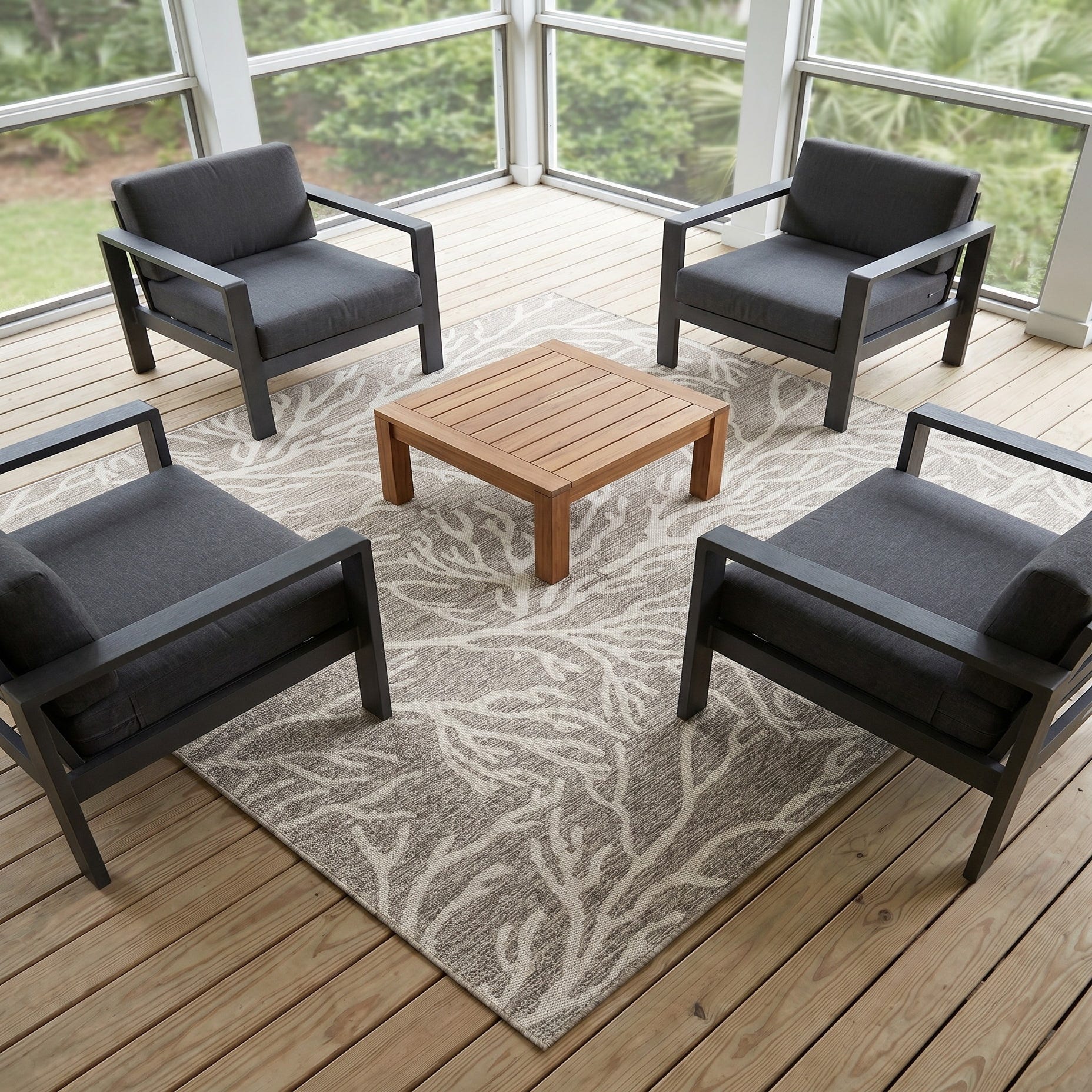 7' 10 x 7' 10 Easy-Clean Coastal Indoor / Outdoor Square Rug