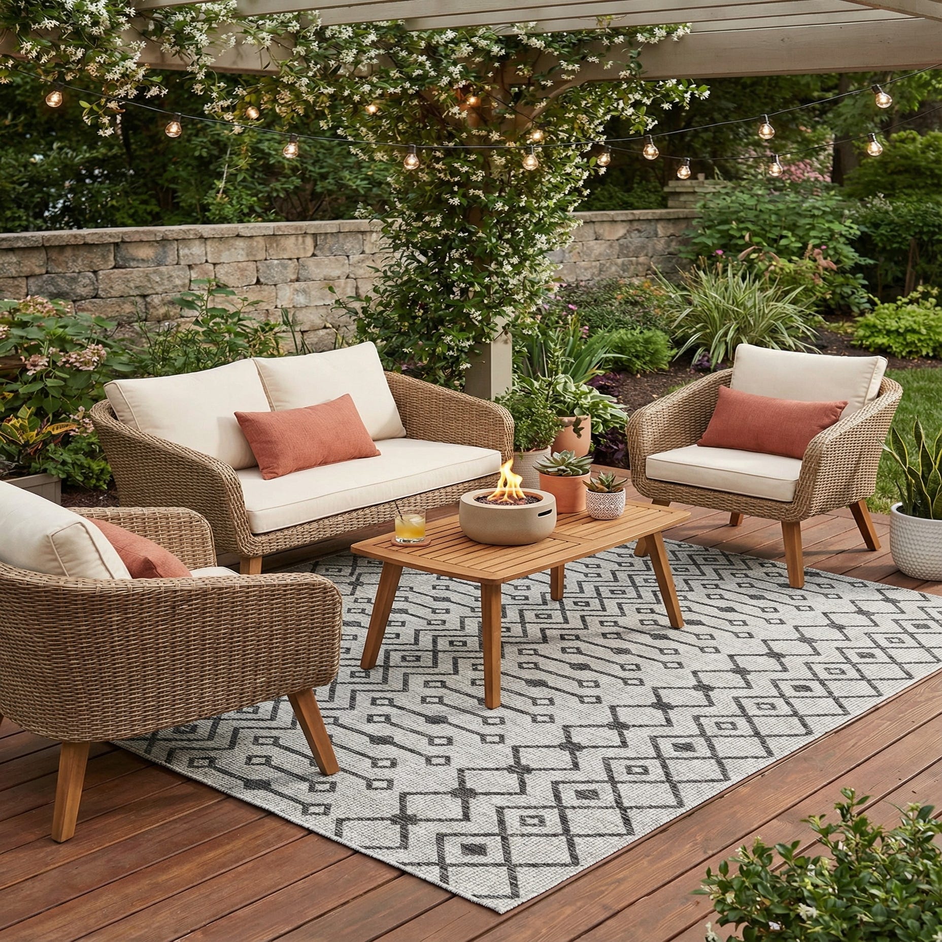 The sleek color palette easily complements an array of outdoor furnishings, making this rug an ideal choice for patios, decks, and poolside areas. Its stain-resistant properties and shed-free nature accommodate high-traffic environments and make it a practical option for spaces enjoyed by pets and families. Its crisp design and contemporary aesthetic allow it to enhance modern, industrial, or minimalist decor themes with ease.