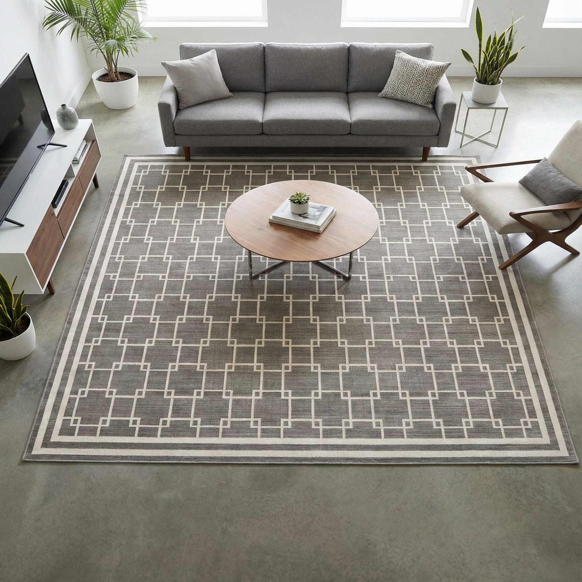 Primary color is Gray. Colors in this rug include: Gray, Ivory.