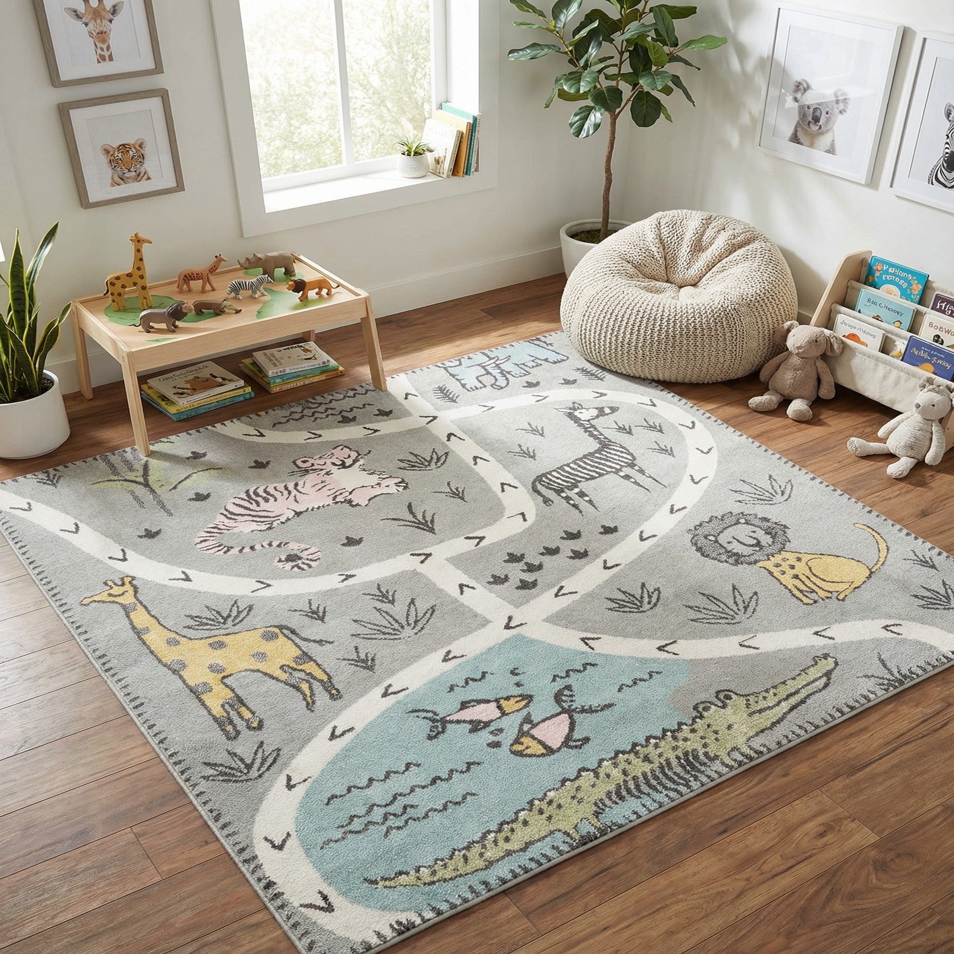 7' 10 x 7' 10 Animals Whimsy Kids Square Rug