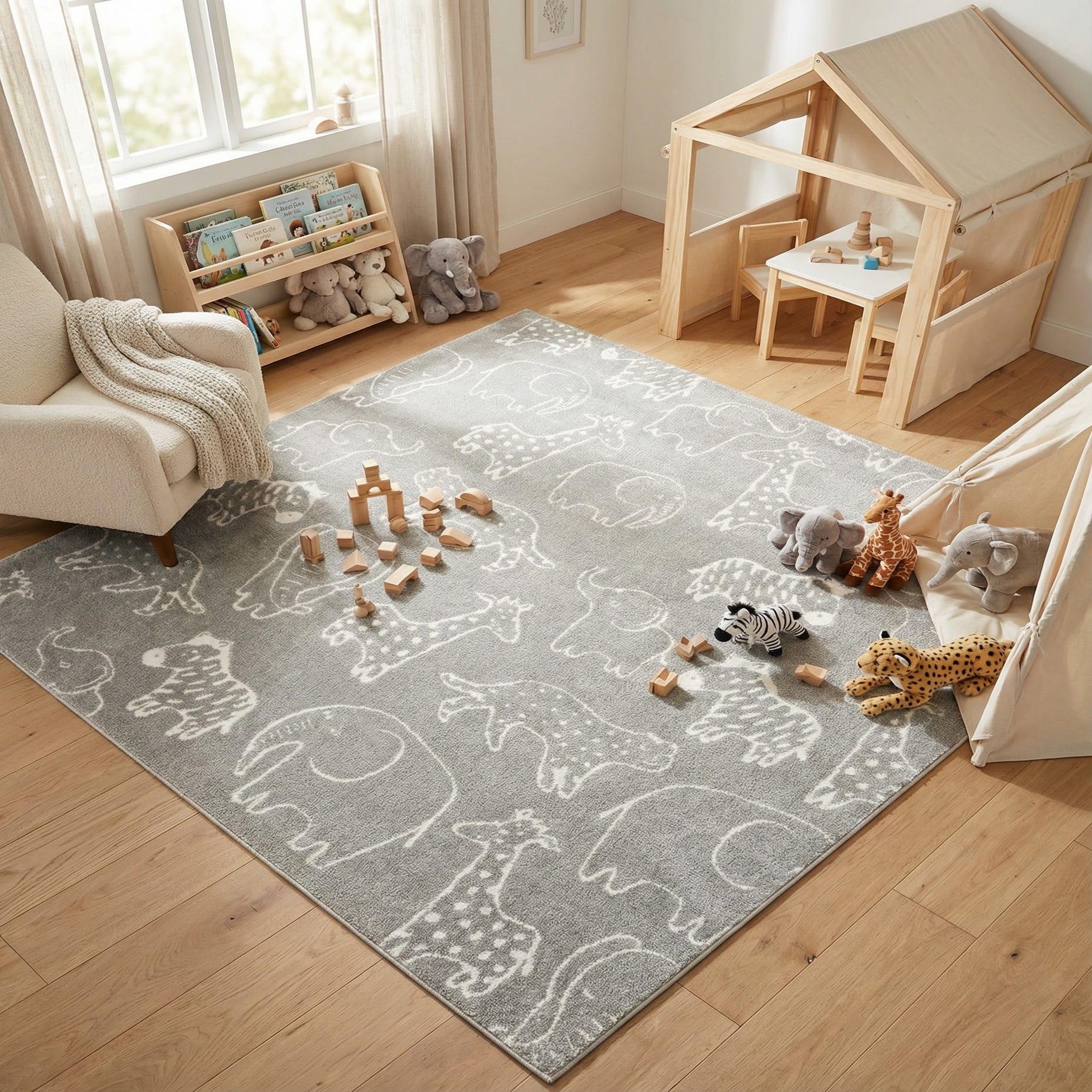 Primary color is Gray. Colors in this rug include: Gray, Ivory.