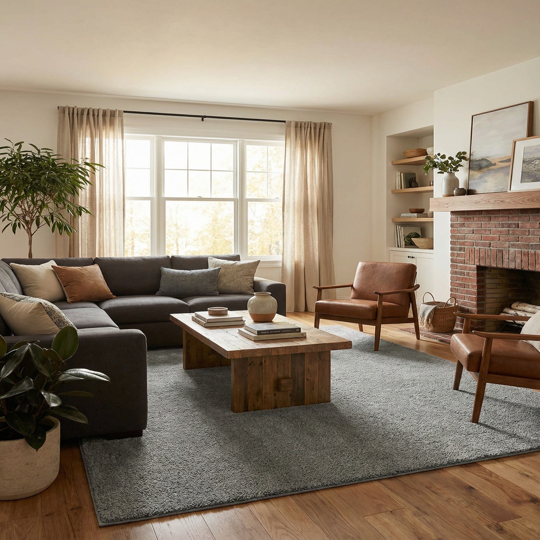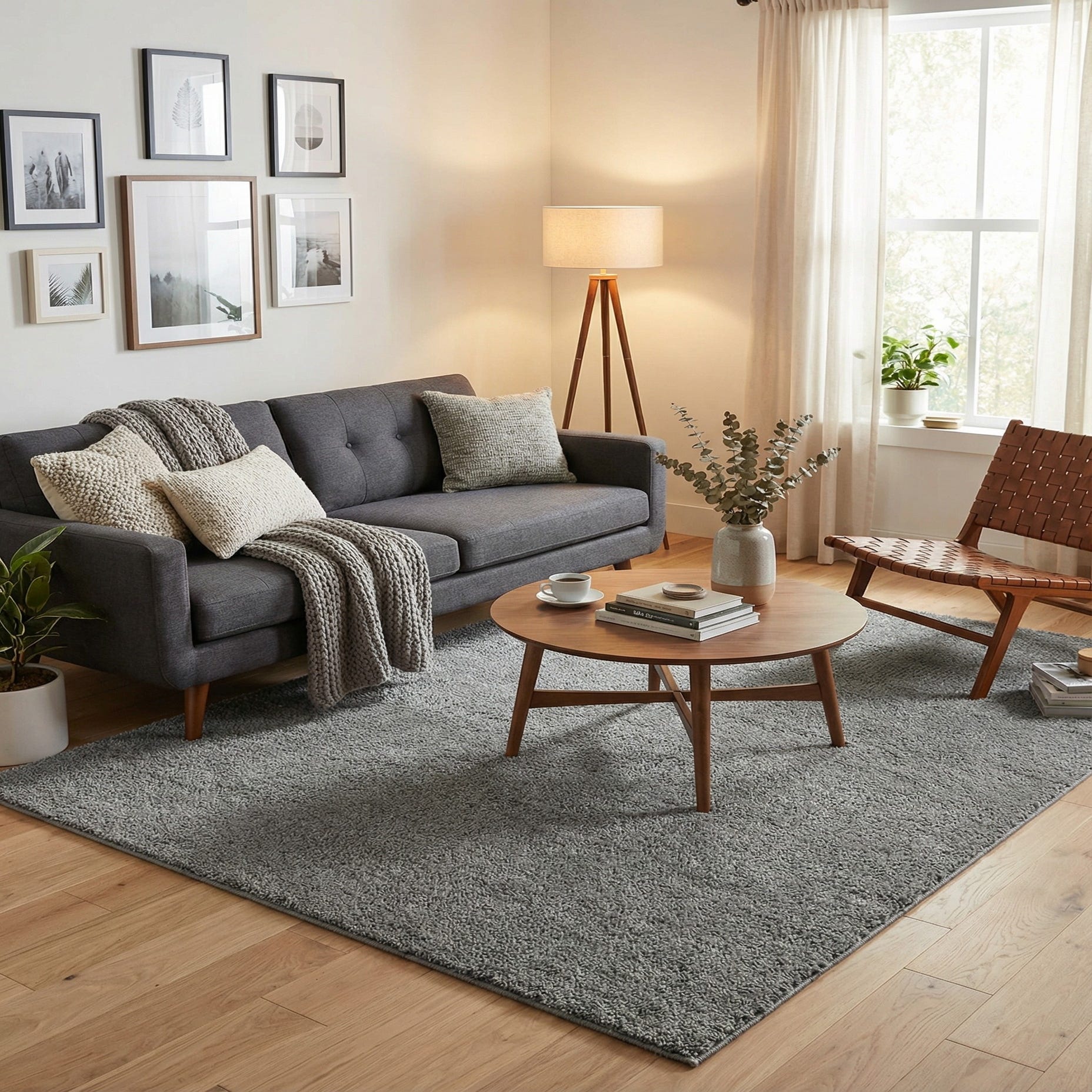 Suited to modern, minimalist, or transitional interiors, this rug anchors a sofa grouping in the living room, adds a quiet foundation beneath a bed, or defines a home office layout. Pair it with warm wood tones and matte black accents for a contemporary contrast, or layer it with pale linens and cool metallics for a calm, cohesive palette.