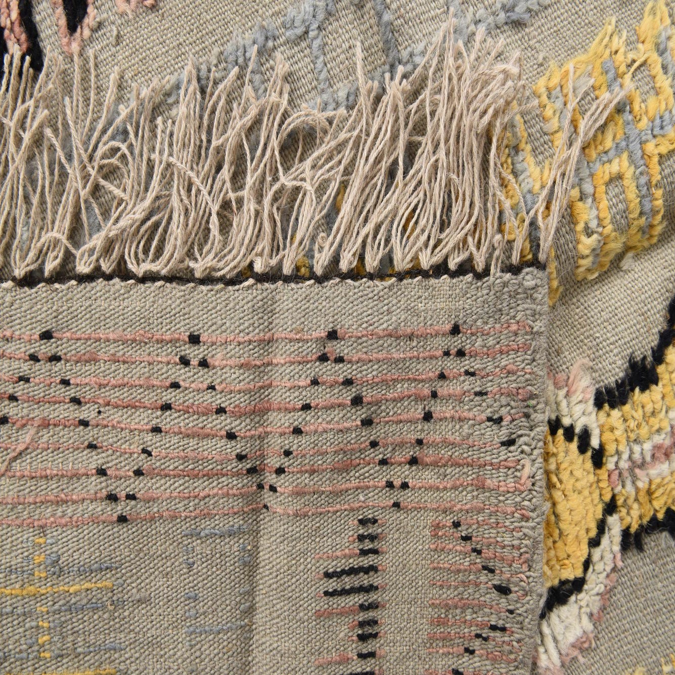 A rectangular 8x10 Darya rug with a textured gray base, featuring modern Oriental patterns in yellow, light blue, pink, and black, with fringed ends.