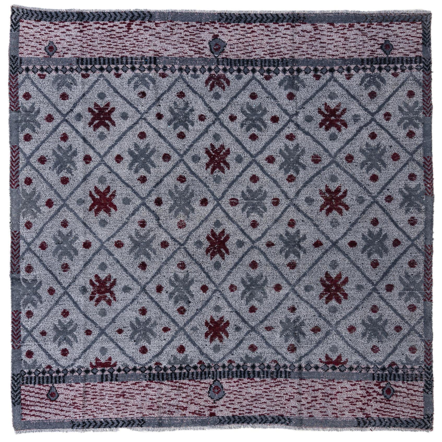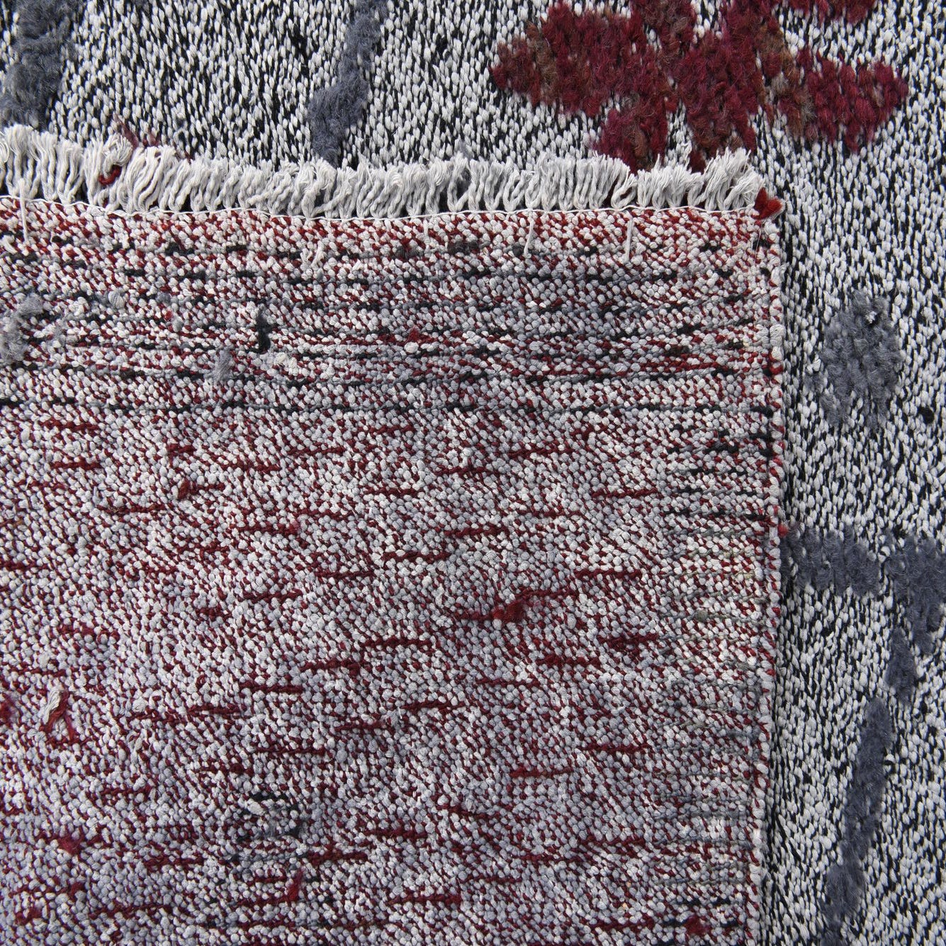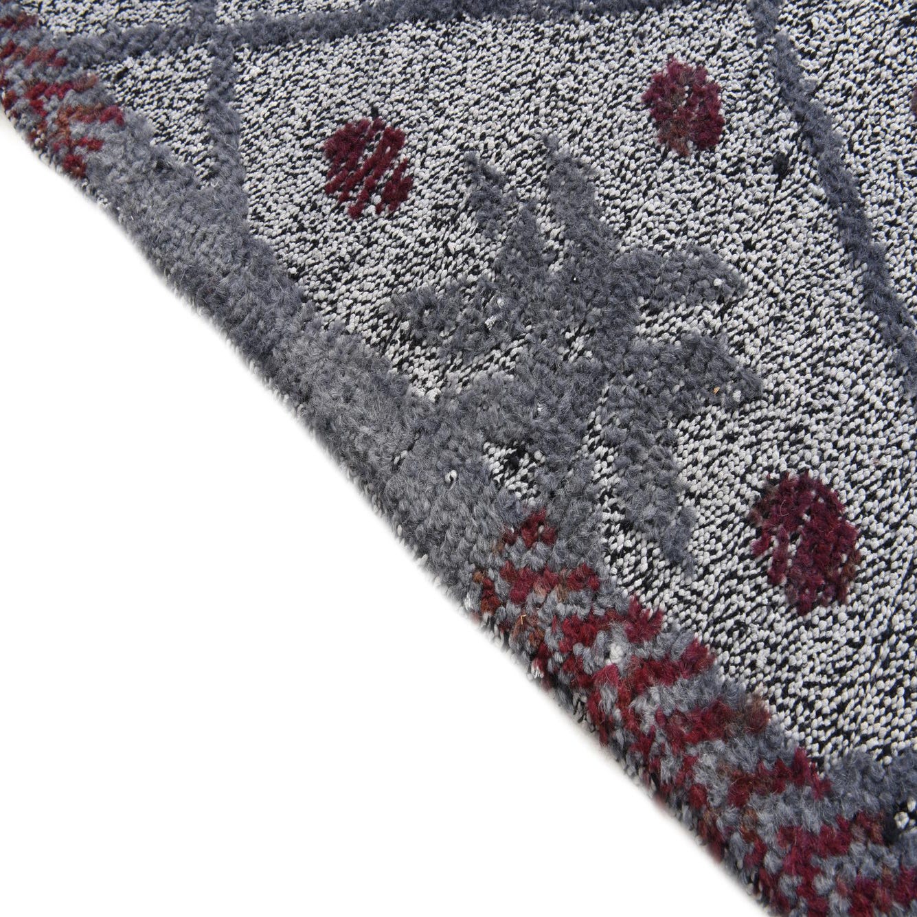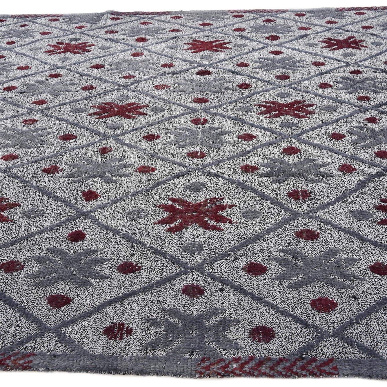 Primary color is Gray. Colors in this rug include: Gray, Burgundy.