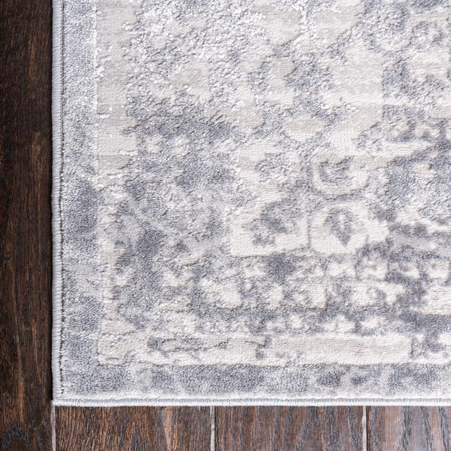 Primary color is Gray. Colors in this rug include: Gray, Beige.