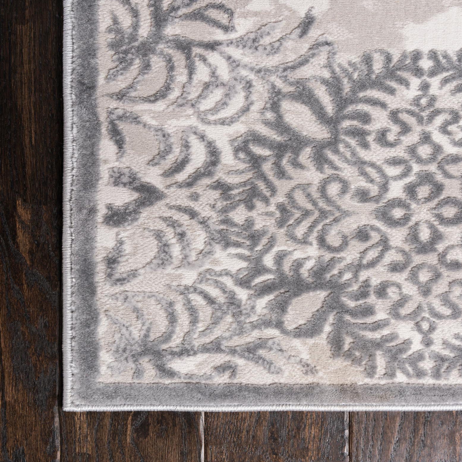 Primary color is Gray. Colors in this rug include: Gray, Beige, Ivory.