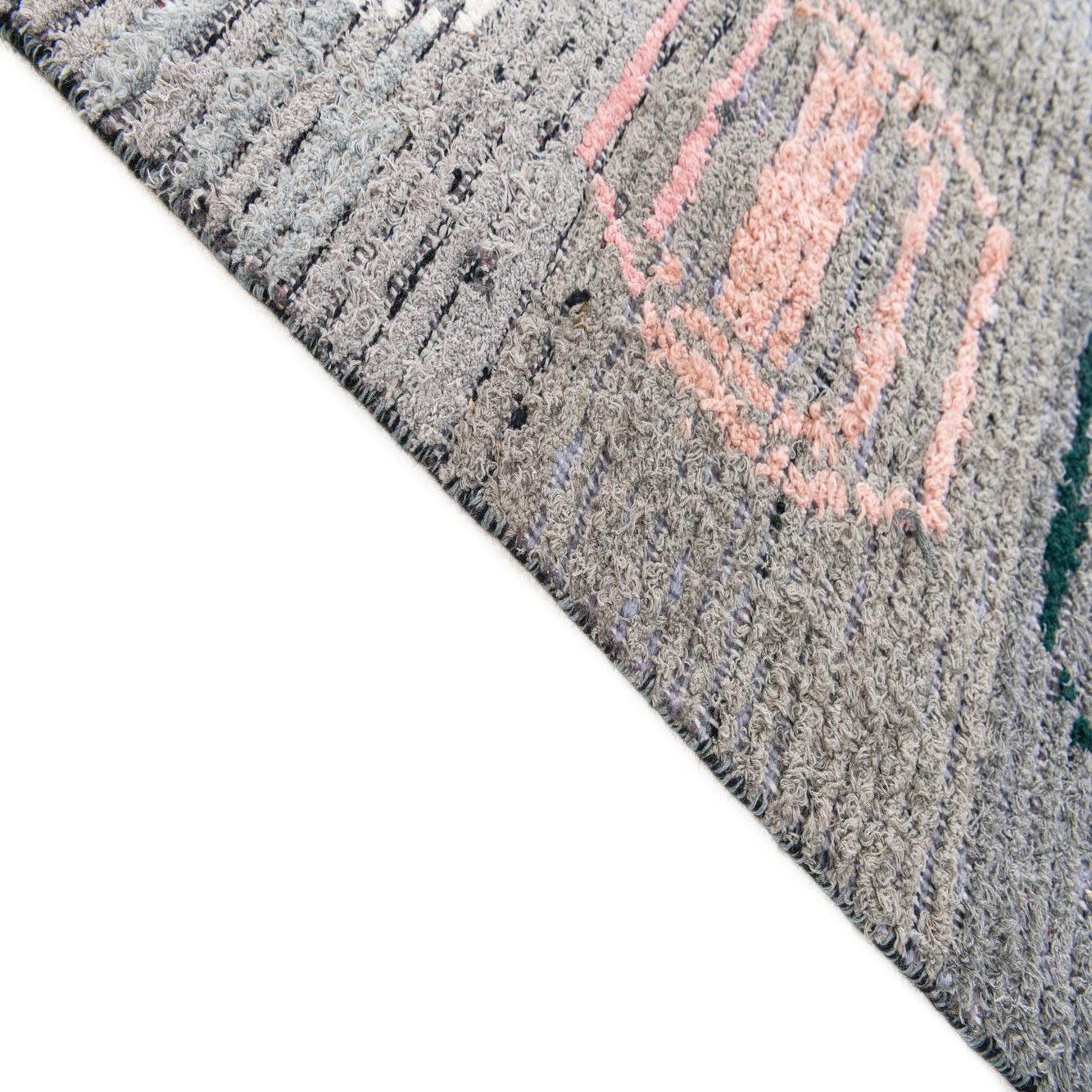Primary color is Gray. Colors in this rug include: Gray, Blue, Green, Navy Blue, Orange, Red, Yellow, Pink.