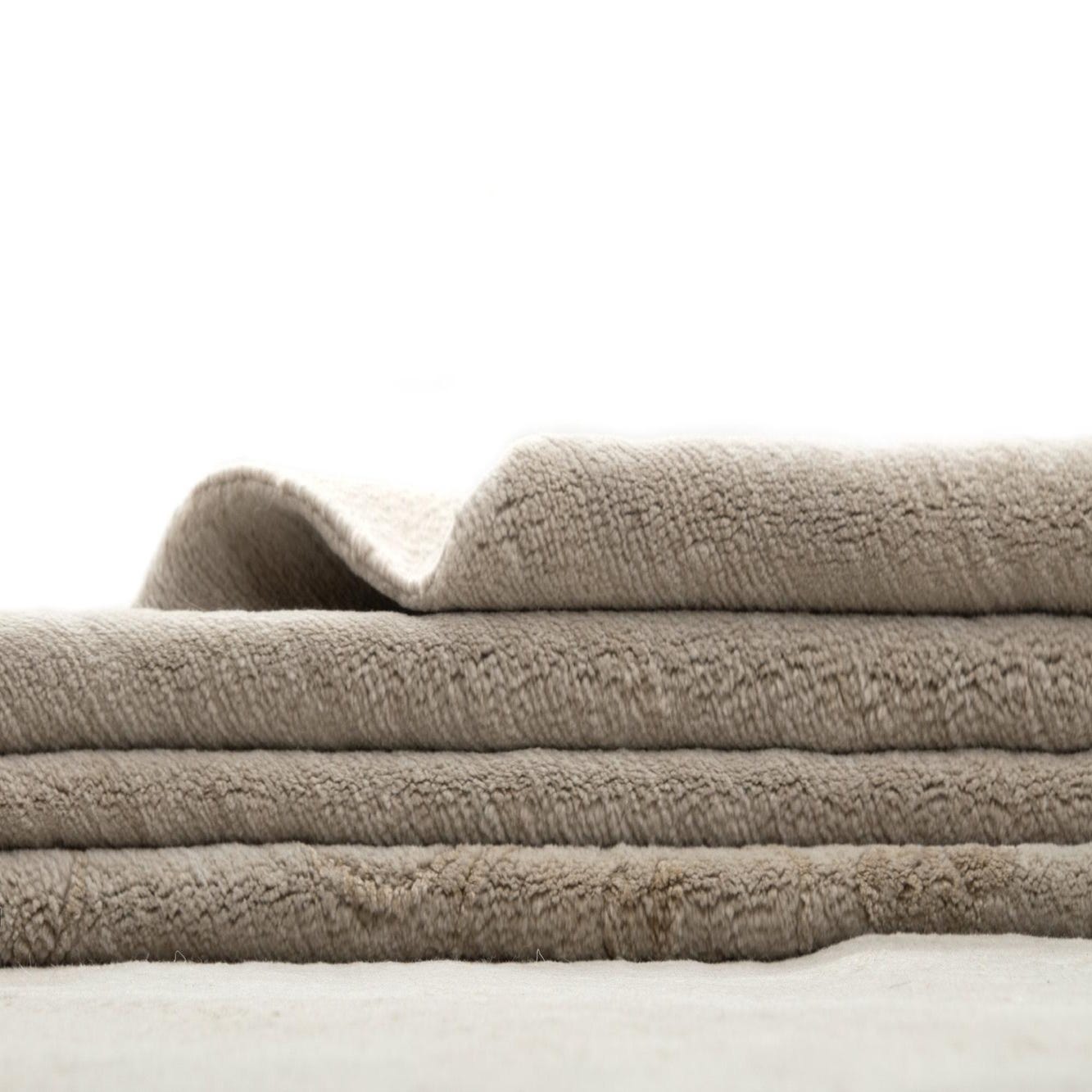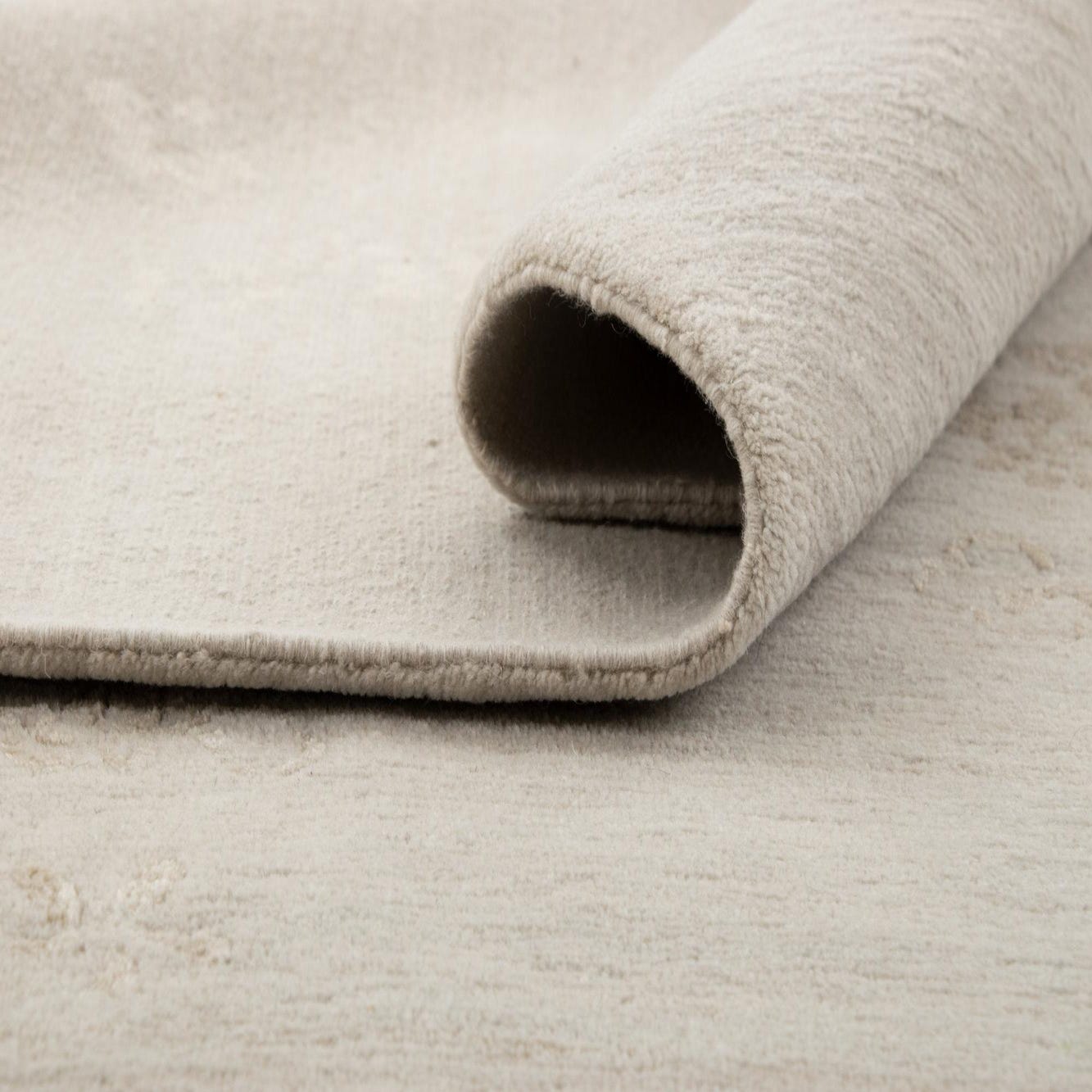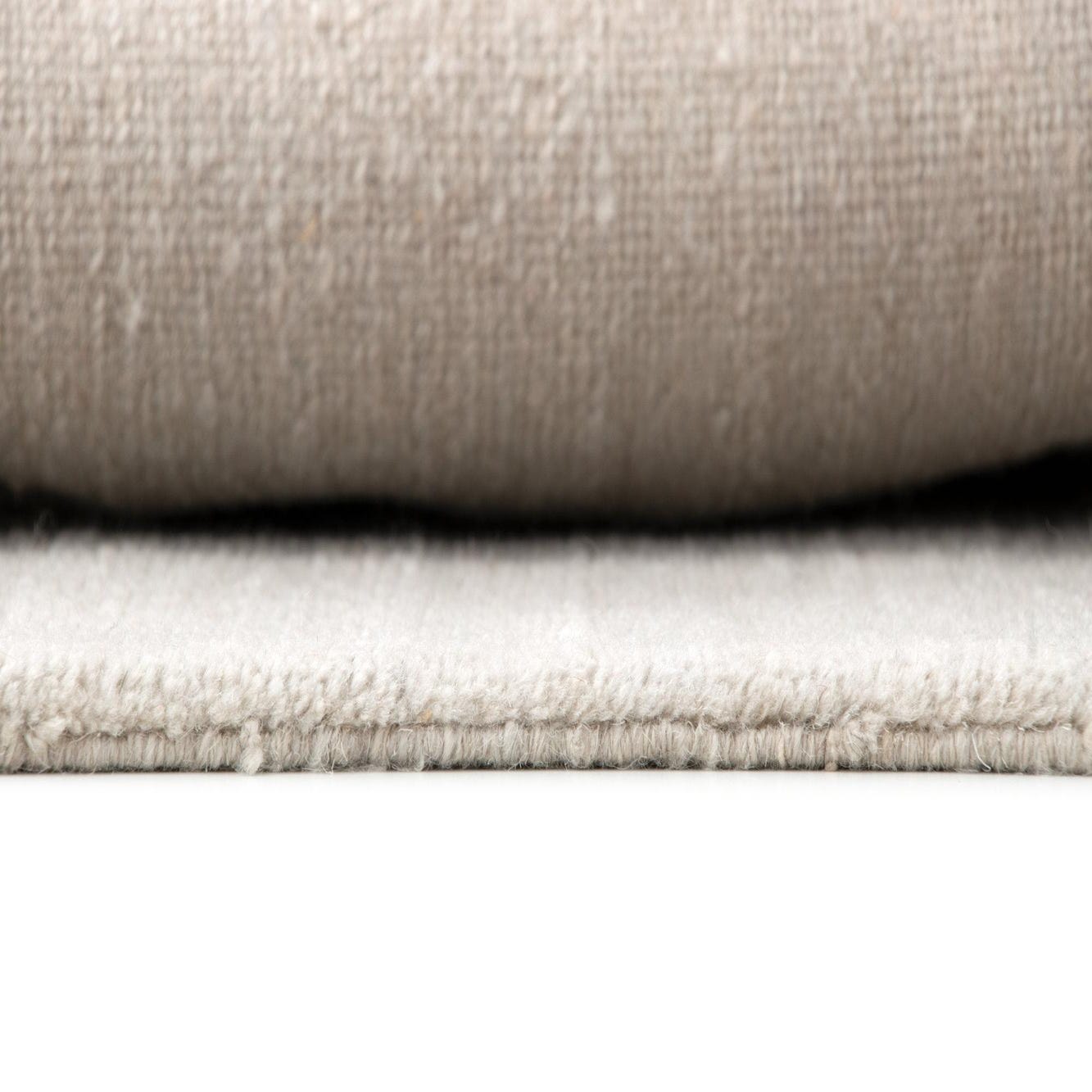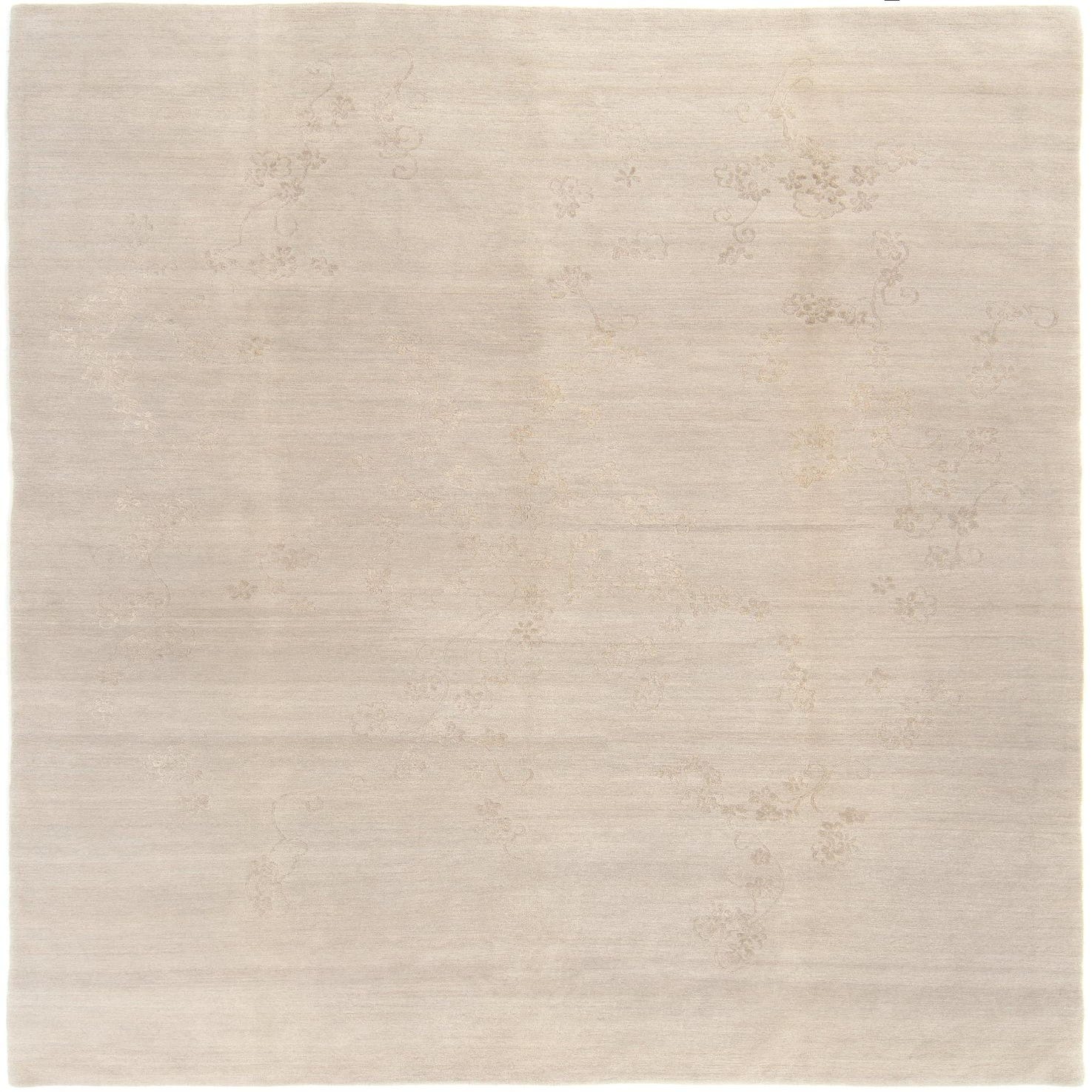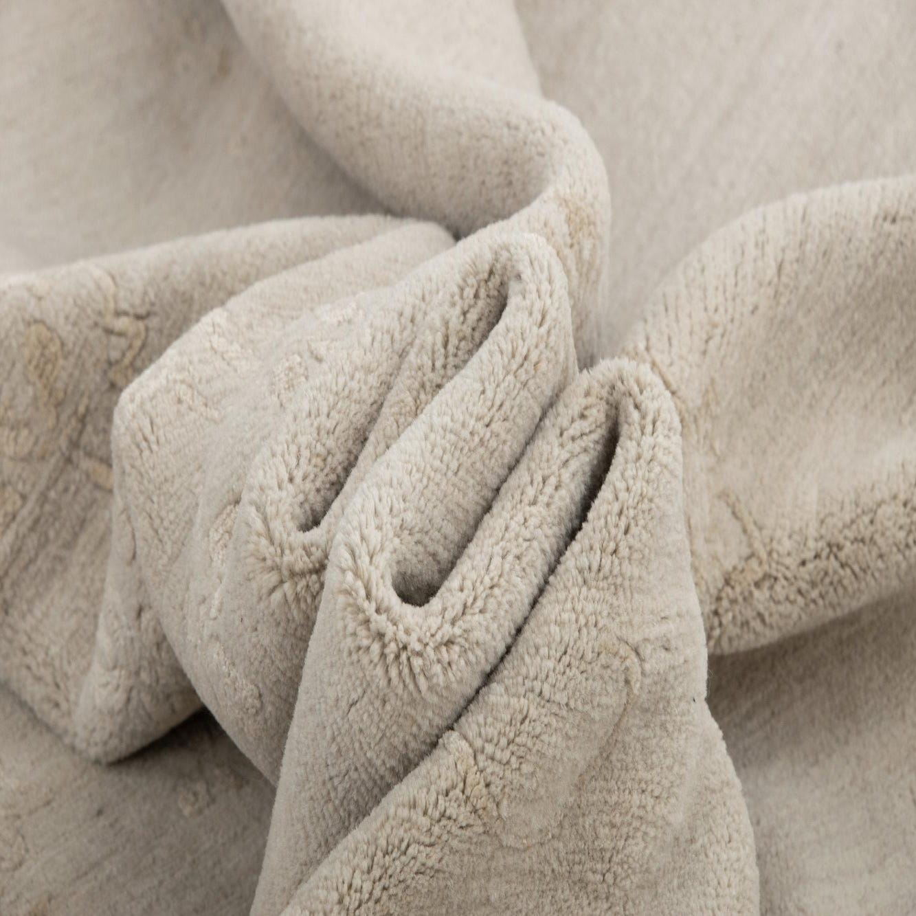 An 8x10 rectangular gray wool rug with a subtle, light gray Persian floral pattern, ideal for a living room.