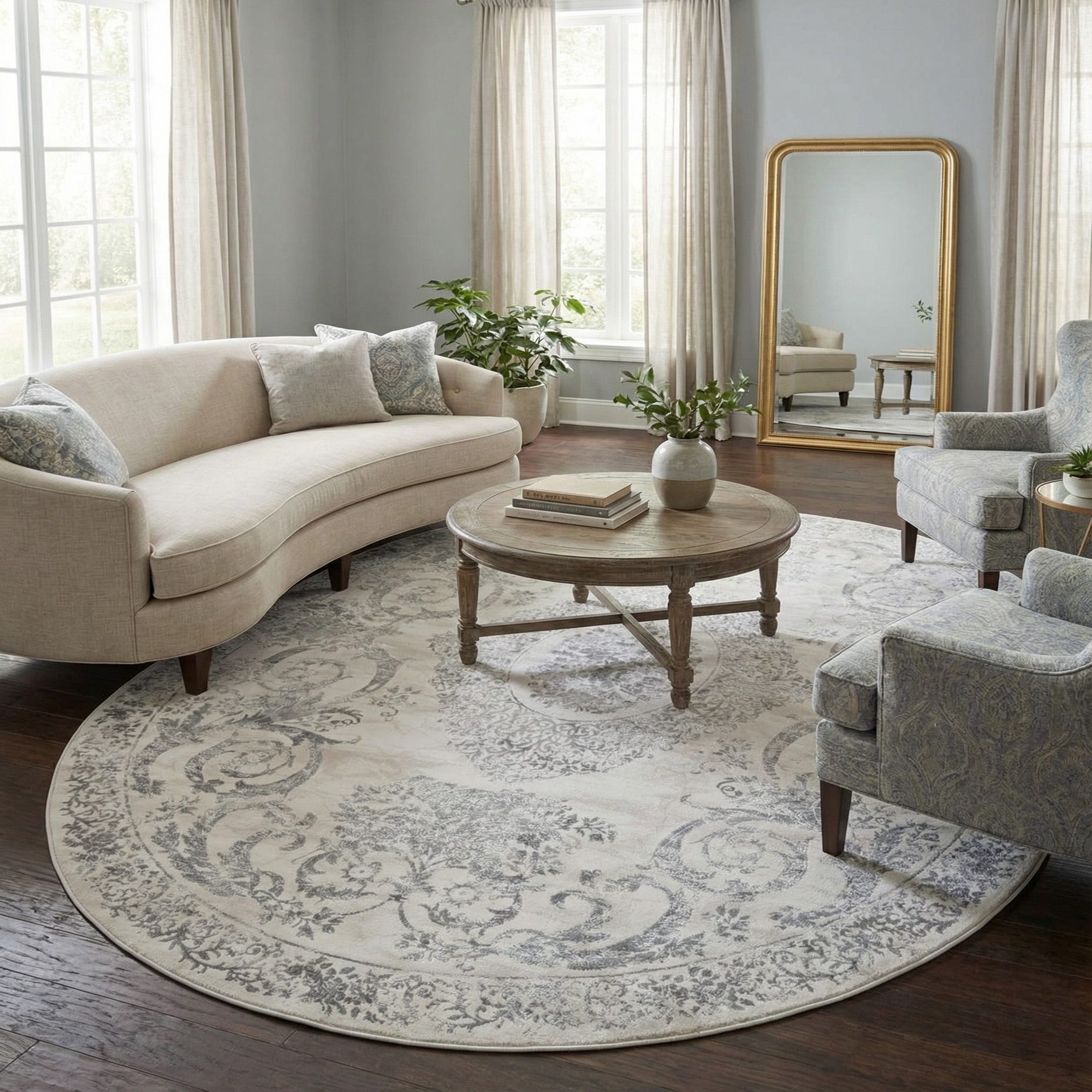Primary color is Gray. Colors in this rug include: Gray, Beige, Ivory.