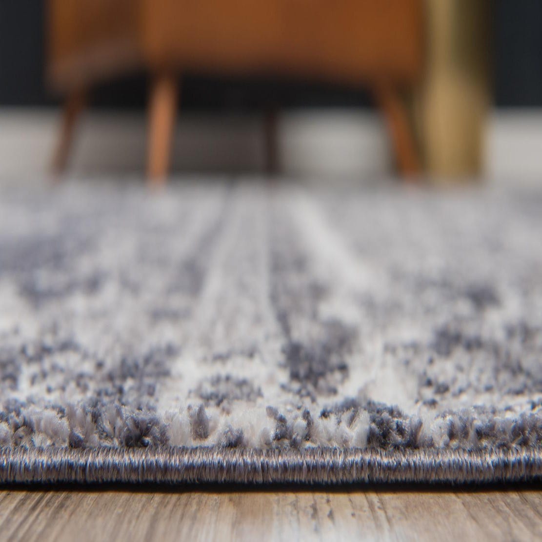 Use it to ground a neutral living room beneath a sectional, add a soft layer to a bedroom, or define a seating area in a home office. It pairs well with warm wood tones and brass accents for a cozy, transitional look, or with clean-lined, cool-toned furnishings for a more contemporary setting. The versatile gray base and muted ivory and beige accents make it easy to mix with textured linens, leather chairs, or layered throws for a balanced, lived-in feel.