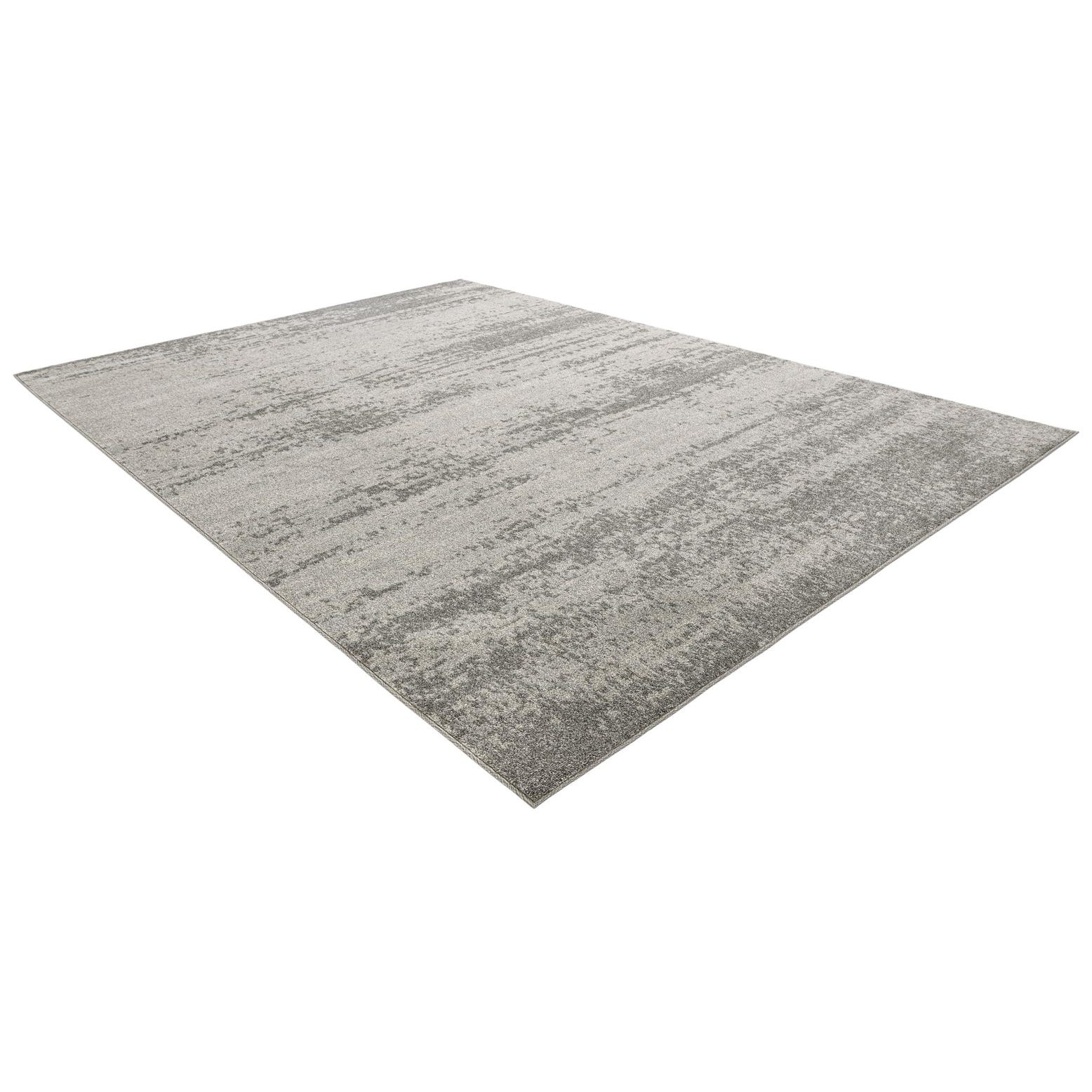 The Angelica collection offers a modern take on classic comfort with its 8x11 rug, machine woven from 100% polypropylene. This rug features a contemporary gradient pattern, with a harmonious blend of gray and beige hues. The gray background gracefully fades into the lighter tones, creating a sense of depth and movement within the design. The texture is smooth and consistent, contributing to a sleek overall appearance.