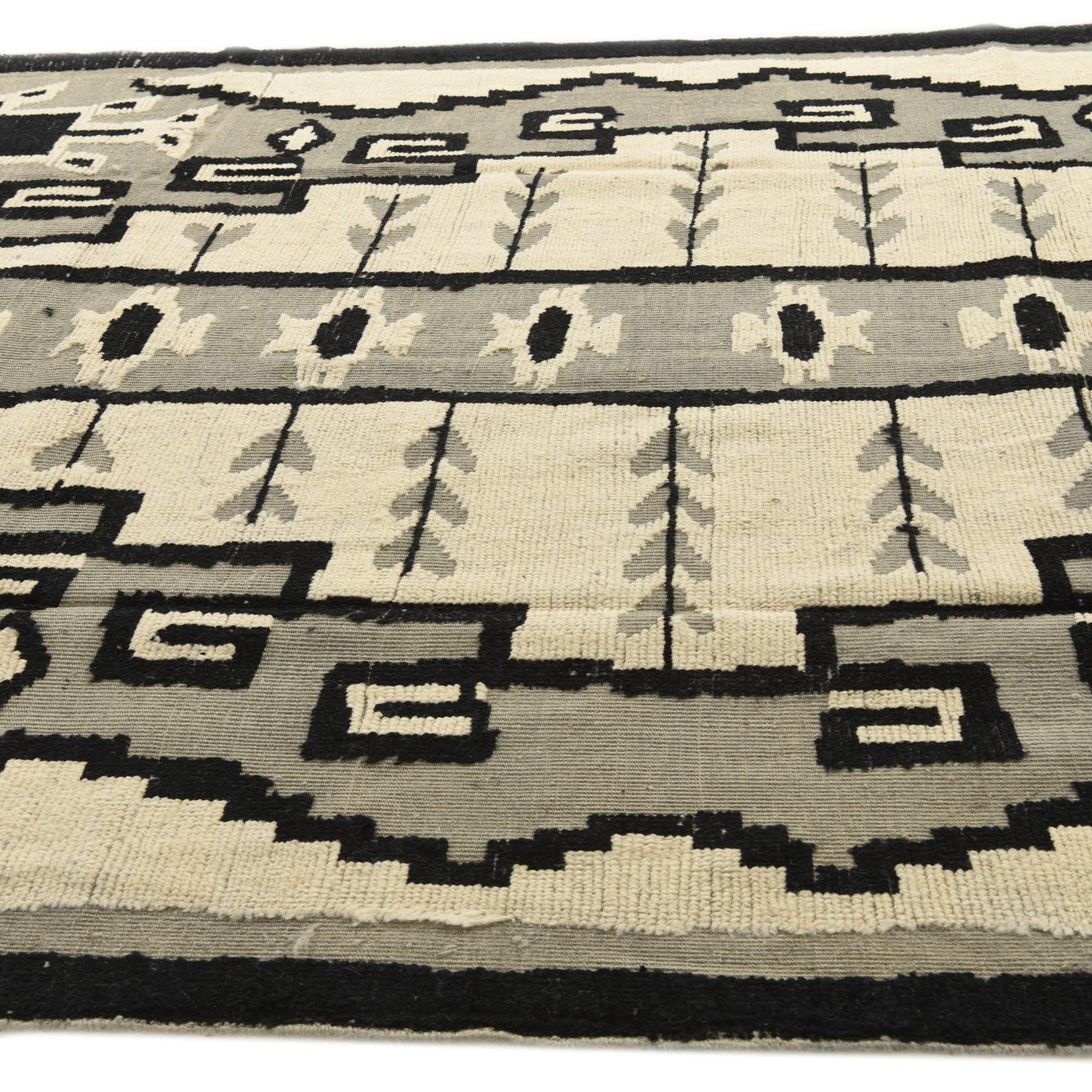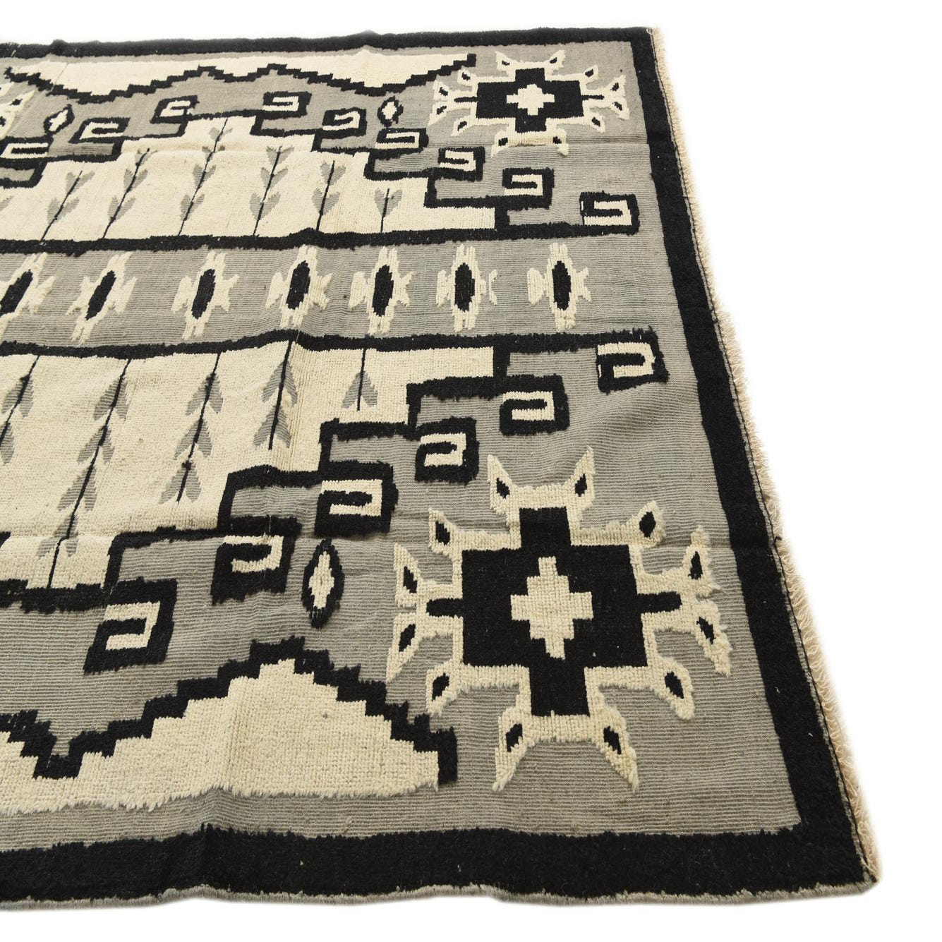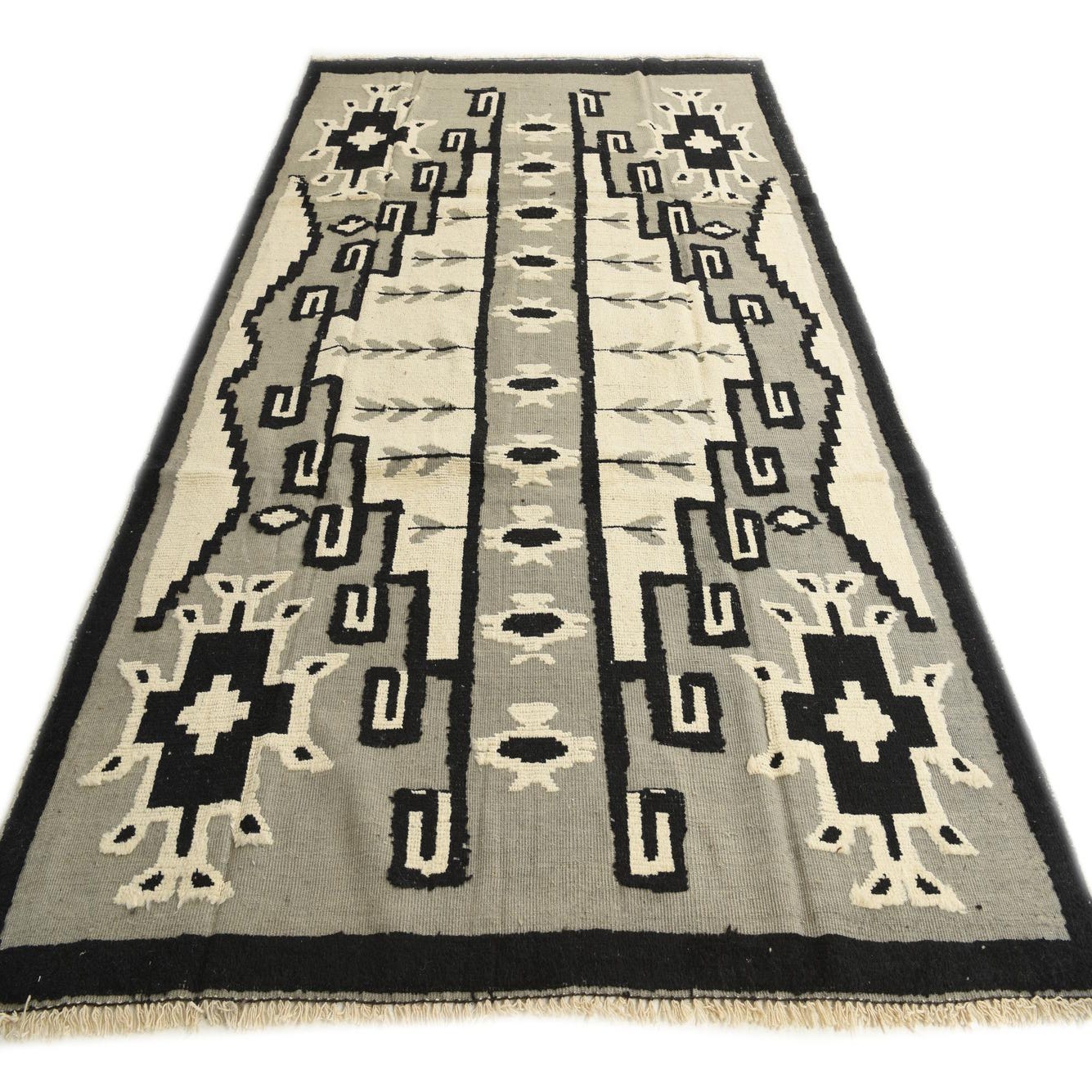 Primary color is Gray. Colors in this rug include: Gray, Black, Ivory.