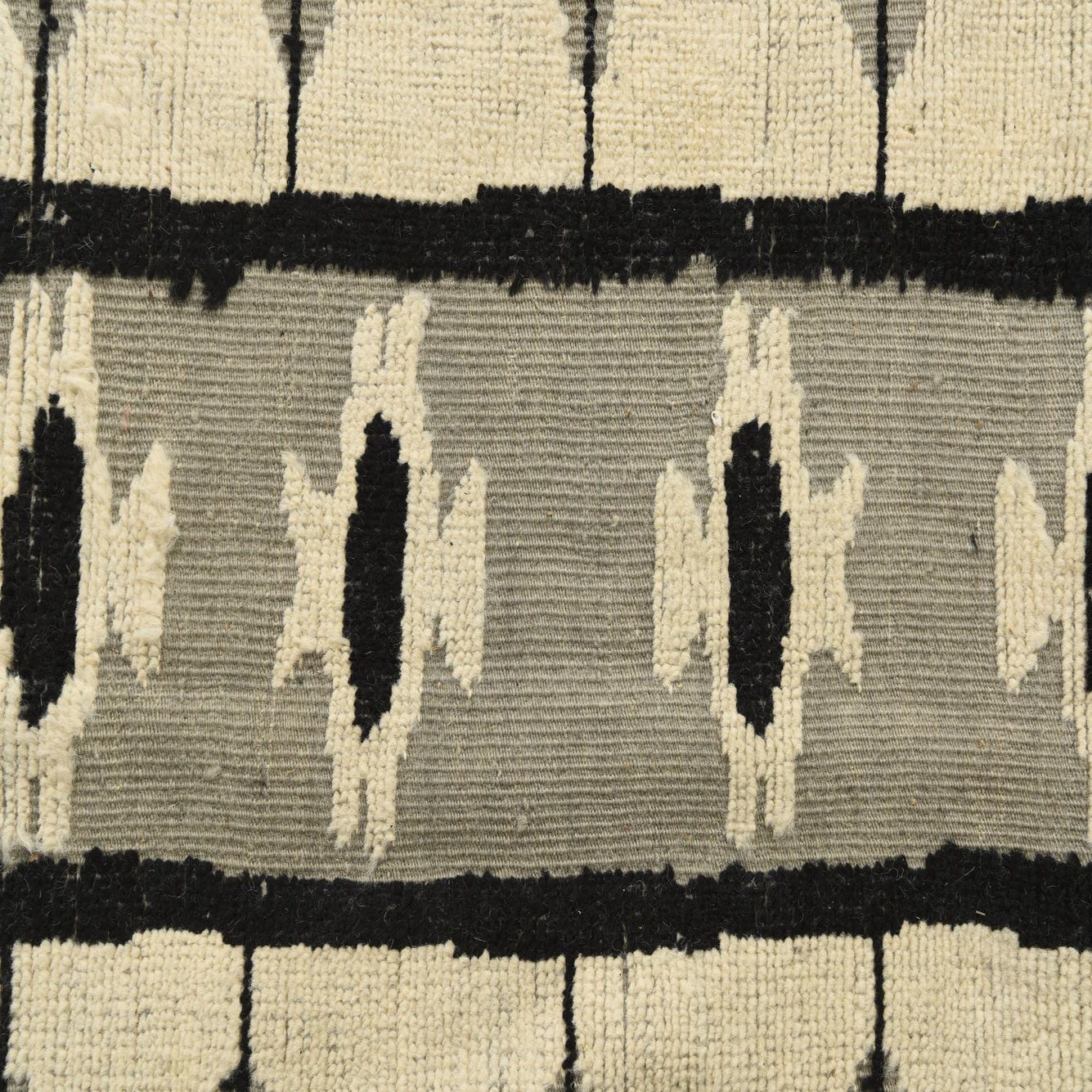 A rectangular 8x11 Darya rug by Rugs.com, featuring a modern geometric pattern in shades of gray, silver, and black, made from 100% wool with a high pile.