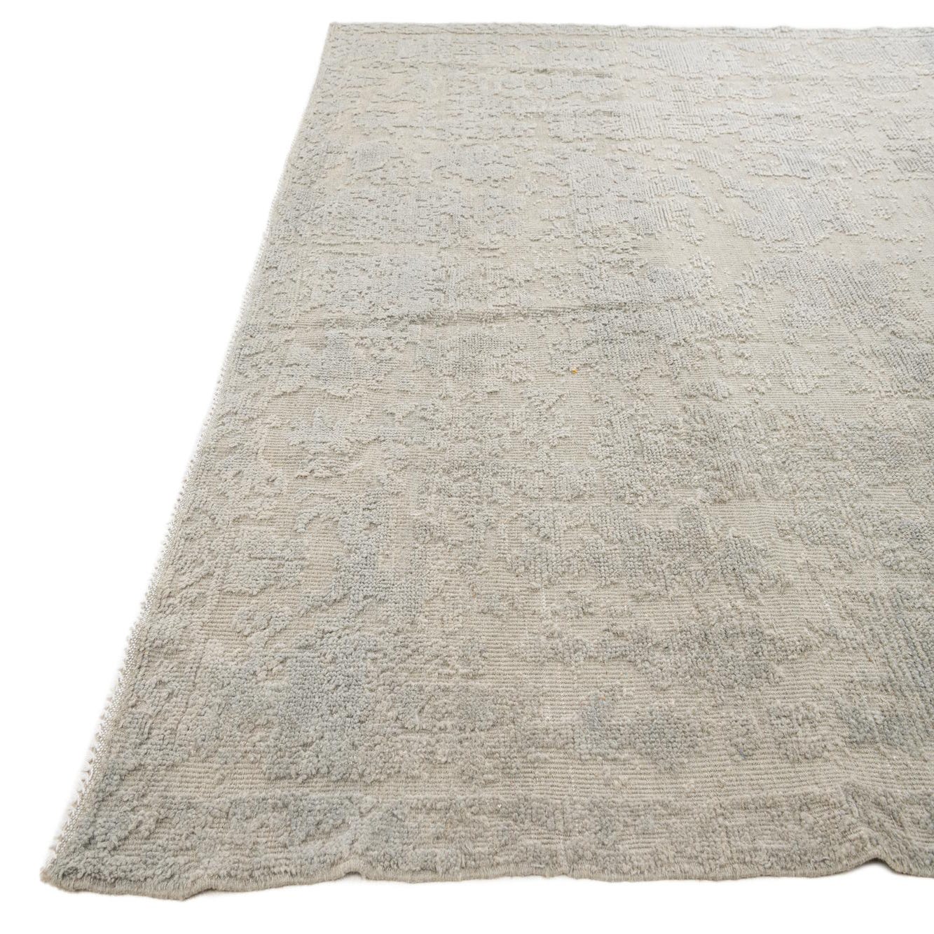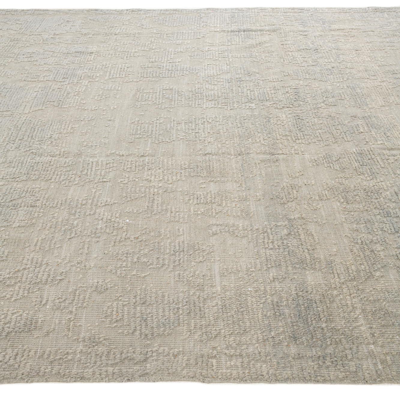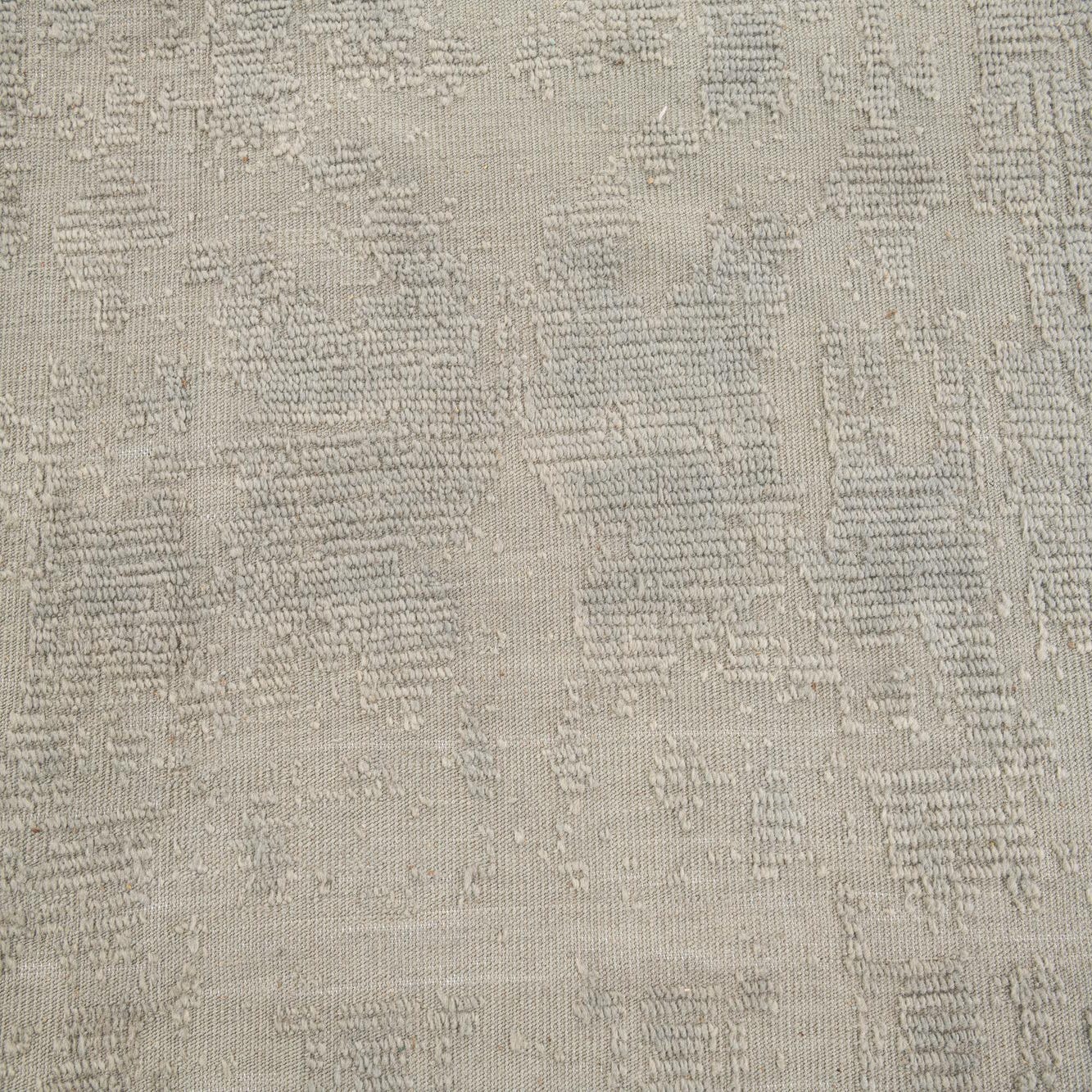 A large 8x11 rectangular Darya rug in shades of gray and silver with a modern abstract pattern, suitable for a living room.