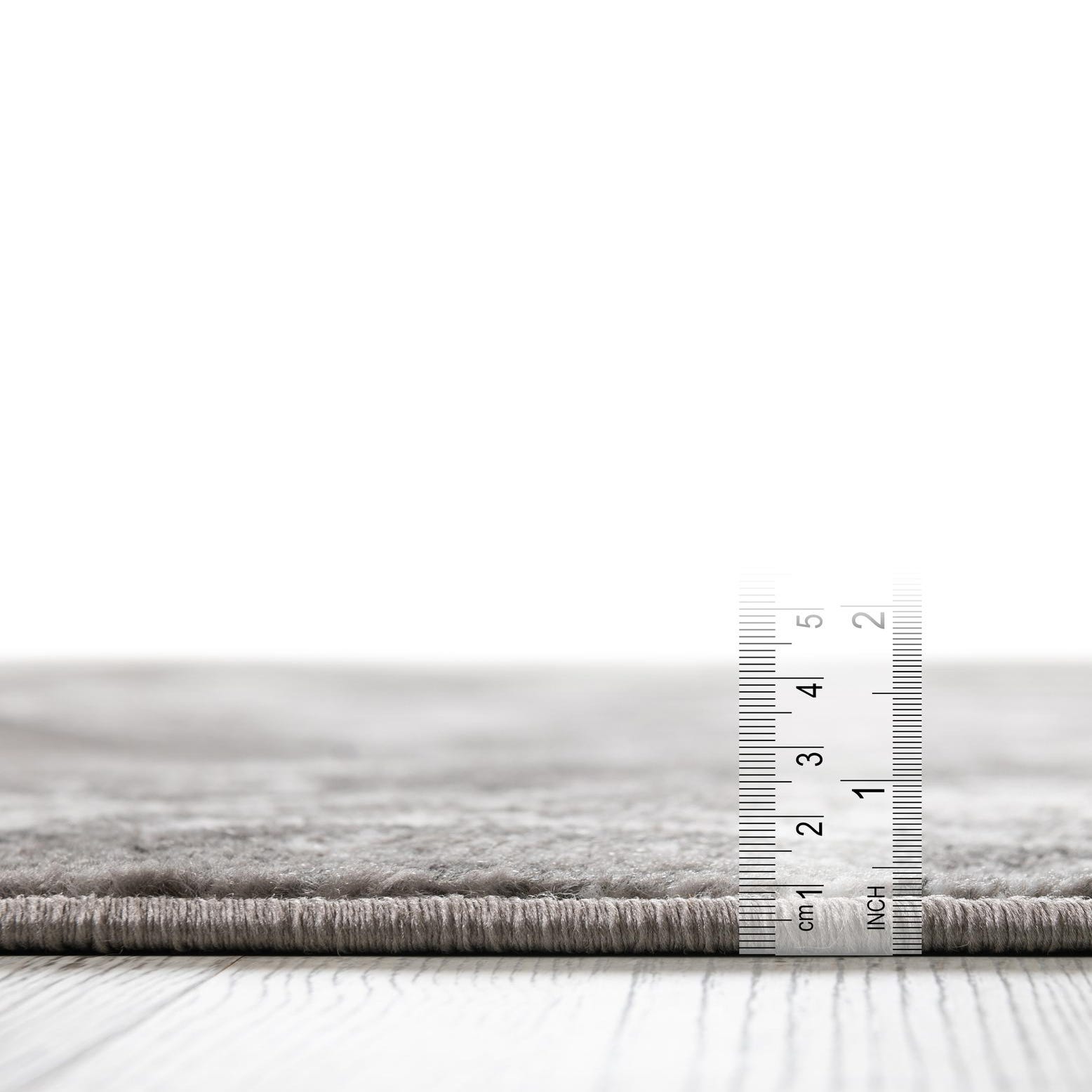 Machine made from 100% polypropylene, the rug has a low, smooth pile that feels soft beneath bare feet and lays flat under furniture. Its durable construction and low profile make it easy to place under a coffee table or dining set, or to use as an anchor for a seating group in a living room or office. The gray-and-beige palette pairs well with warm wood tones and leather, linen upholstery, or cool metal accents, fitting comfortably into modern farmhouse, transitional, or contemporary interiors.