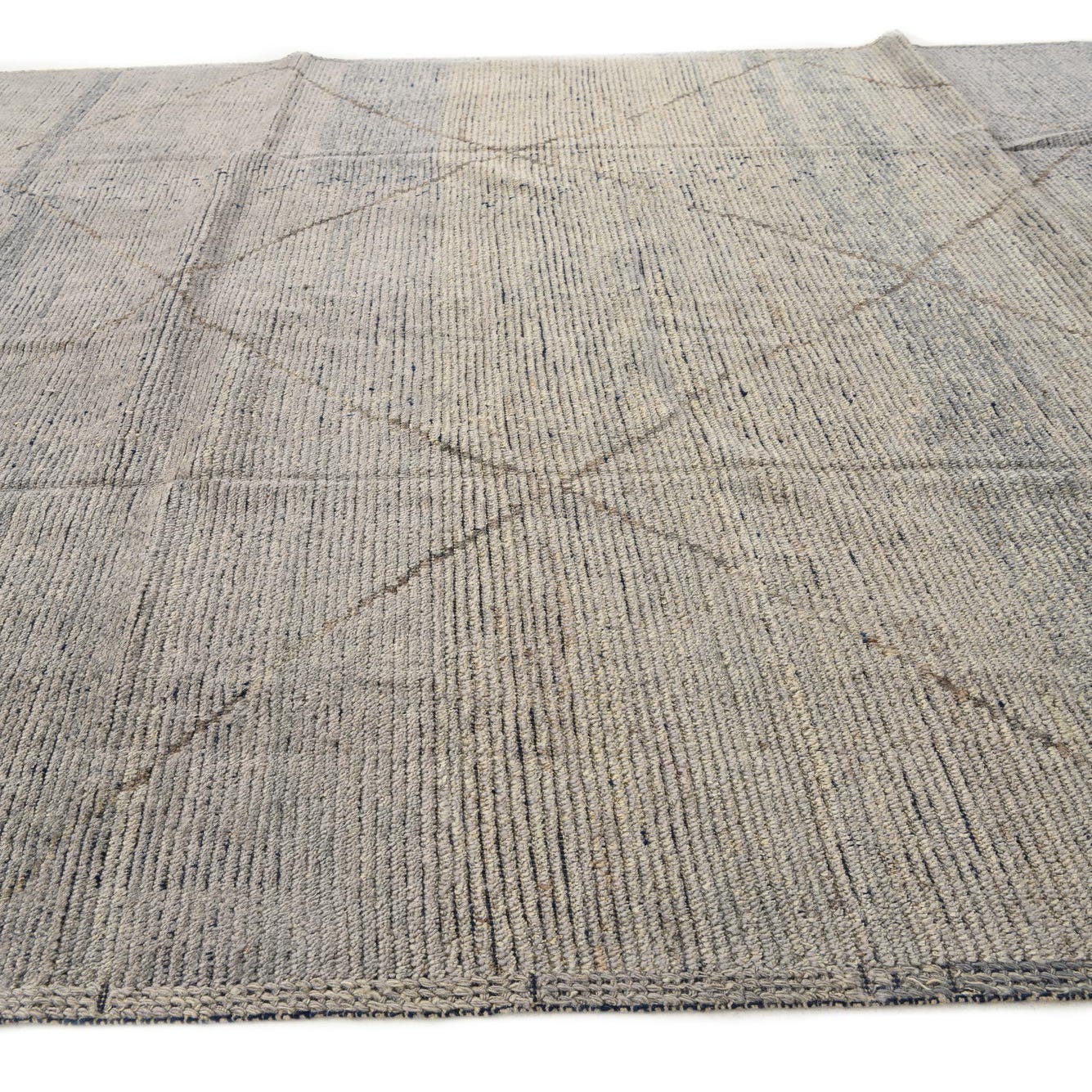 An 8x11 rectangular gray wool shag rug with a subtle tribal diamond pattern, ideal for a modern living room.