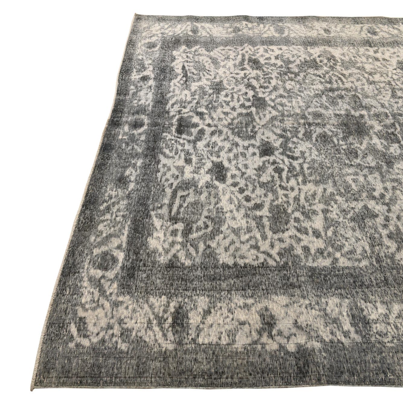 This Ultra Vintage collection rug is a hand-knotted piece, offering a timeless aesthetic with its intricate pattern and a classic color palette. Constructed from 100% wool, the rug measures 8x11 feet, providing ample coverage for a variety of room sizes. The dominant gray background is complemented by the ivory detailing, creating a balanced and versatile design.
