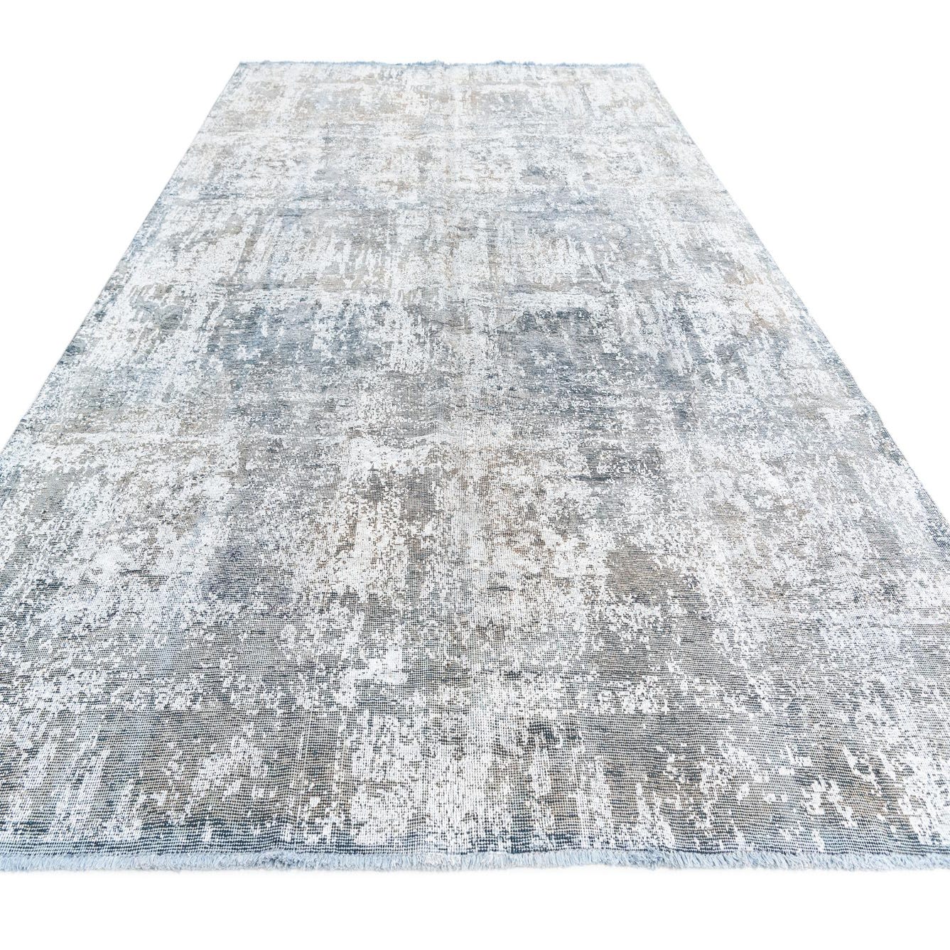 A rectangular 8x12 Ultra Vintage rug in shades of gray and silver with a distressed, abstract pattern, suitable for an indoor living space.