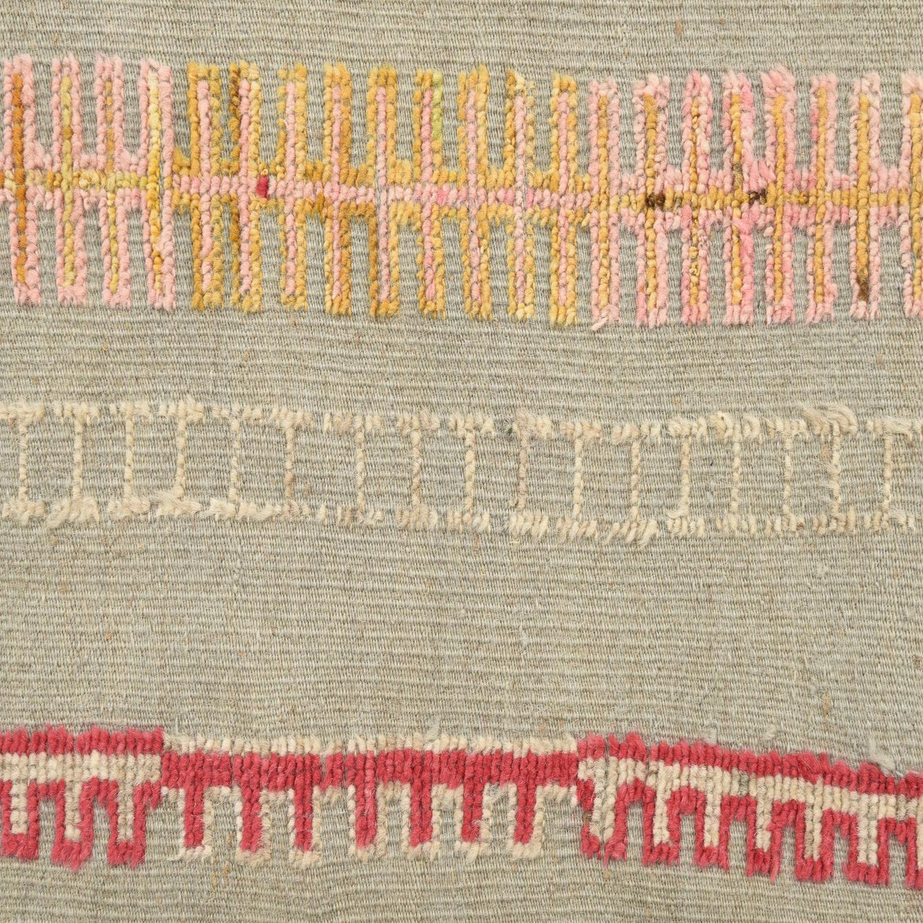 Primary color is Gray. Colors in this rug include: Gray, Black, Brown, Red, Pink, Gold.